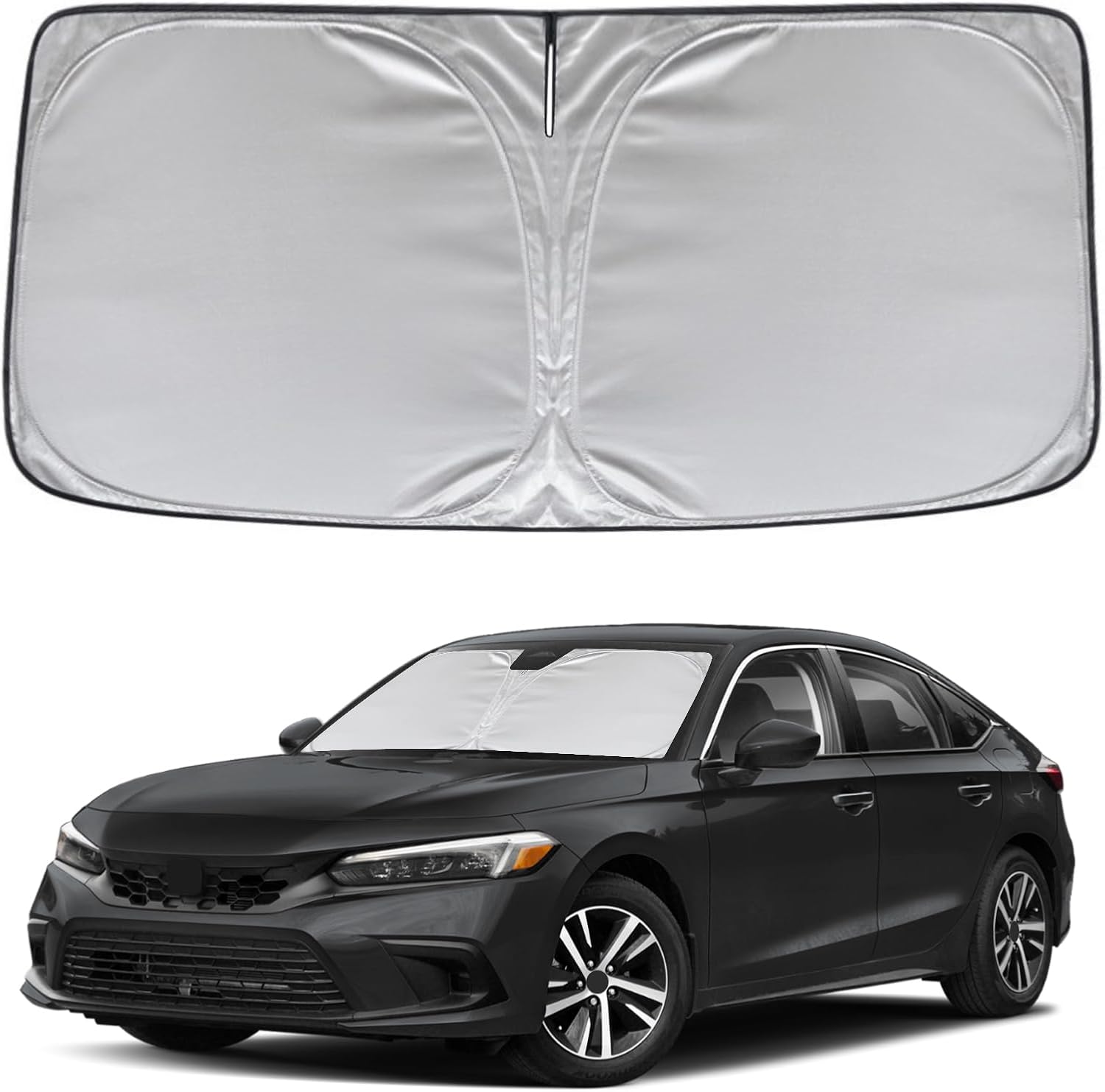 - KAYZT windshield sun shade is precise custom fit for 2022 2023 2024 2025 Honda Civic, Thoroughly covers every corner of the windshield, Tailored to accommodate rear view mirror, Ensuring a seamless and snug fit without obstruction, Must have car accessories for Honda Civic