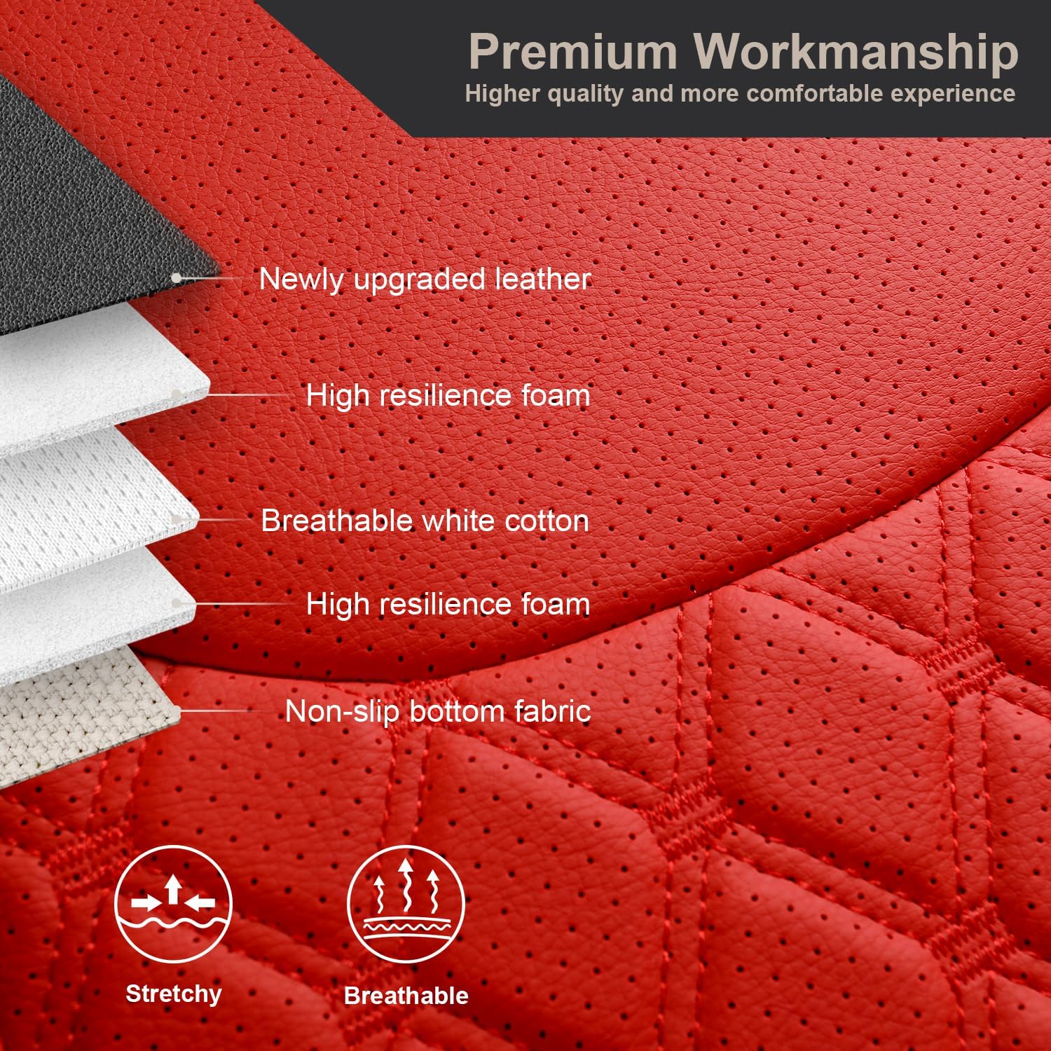 - 【QUILTED DESIGN】 - Front seat cover show rich in stereoscopic vision with a diamond-shaped quilted design and stitching decoration, simple and stylish, and it can be perfectly integrated with your car interior.