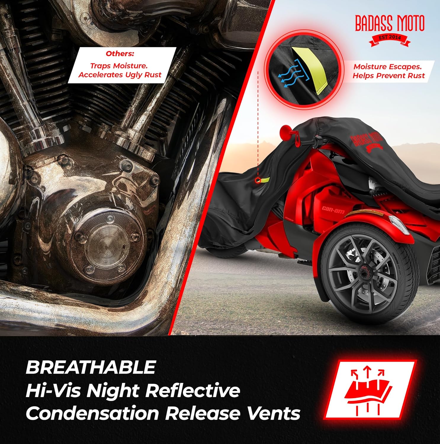 - LONG-LASTING DURABILITY AND SAVINGS: Invest in a can am ryker motorcycle cover that lasts. Made from commercial-grade heavyweight polyester, this can am cover is twice as durable as standard covers. It prevents rust and condensation with moisture release vents, saving you from costly repairs. Protect your Ryker and extend its life, keeping it in pristine condition for years to come.