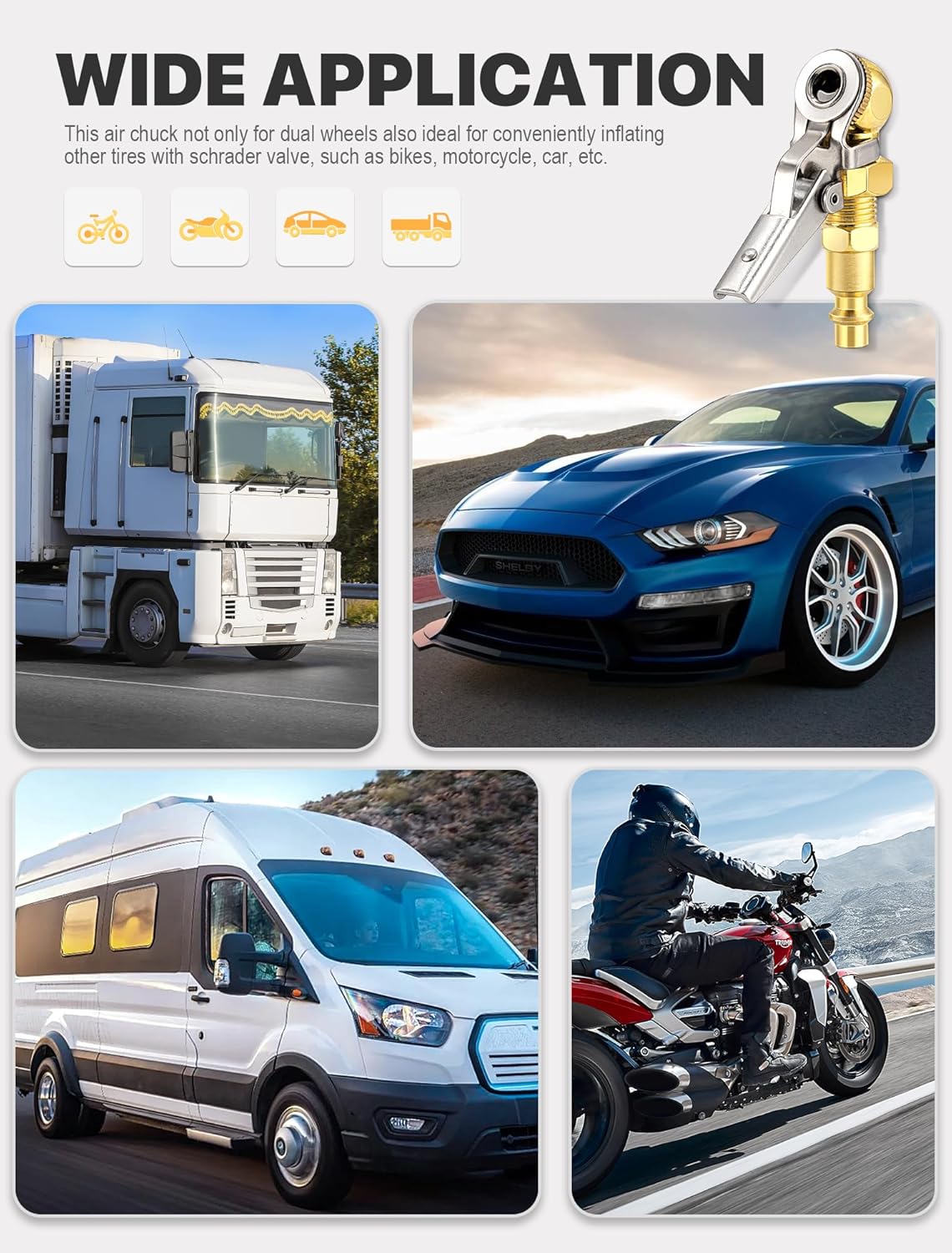 - 【Durable Brass Quick Plugs】: Made of high quality material for greater strength and durability, equipped with two standard brass quick plugs, for easy and swiftly connecting to air lines female quick couple. Making it easier to lock on the valve stem without air leakage, will serve you faithfully for years to come.