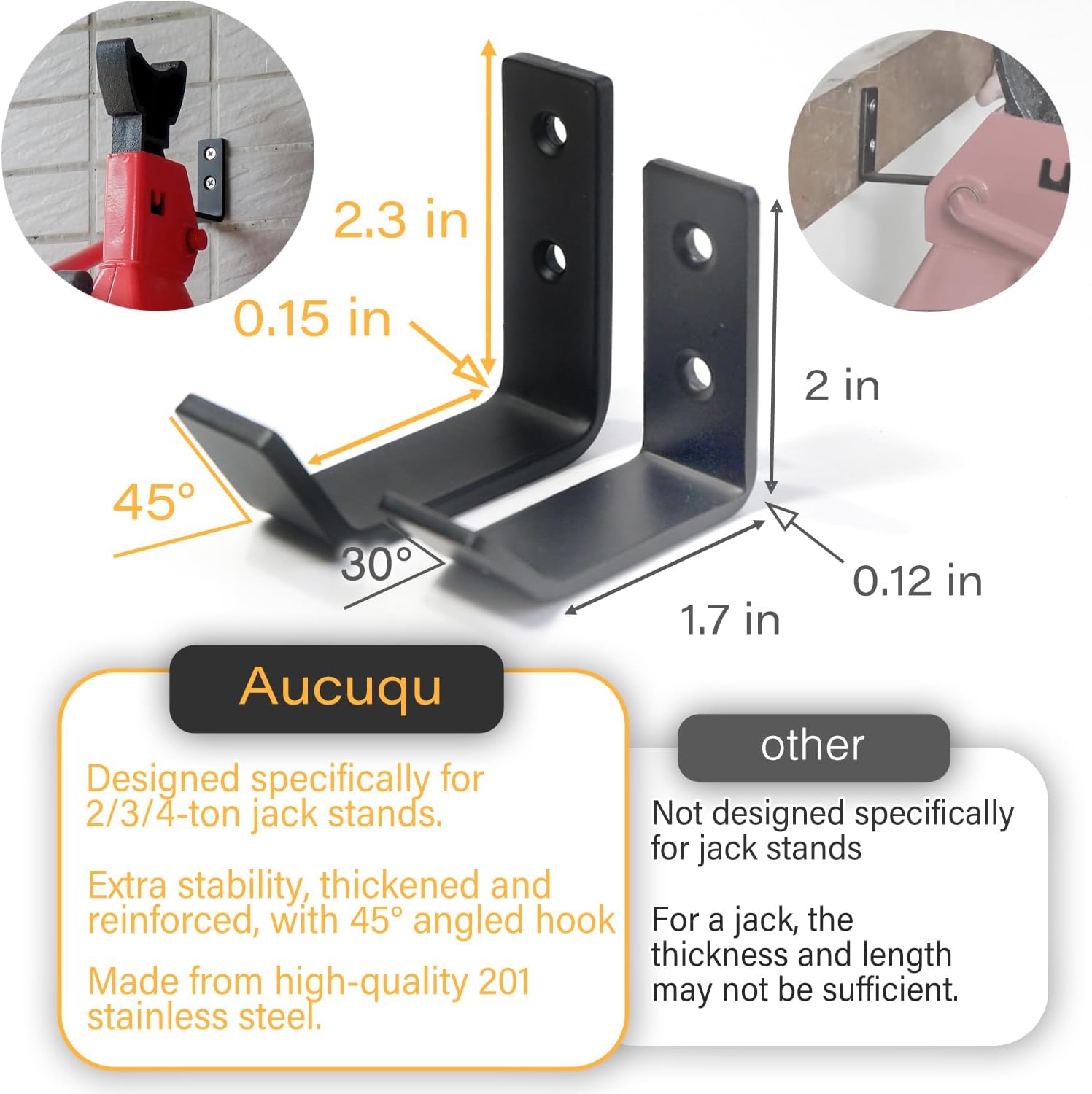 4 Packs Jack Stands Wall Mount Organizer, Heavy Duty Stainless Steel Holder Hook Fits 2 & 3 & 4 Ton Jack Stands