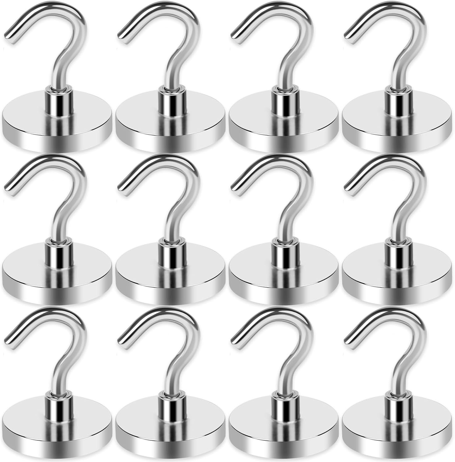 LOVIMAG Magnetic Hooks for Cruise Cabins, 80LBS Magnet Hooks Heavy Duty for Home Accessories, Classroom Must Haves, Magnetic Hook for Metal Door, Magnets with Hook for Hanging-12 Pcs