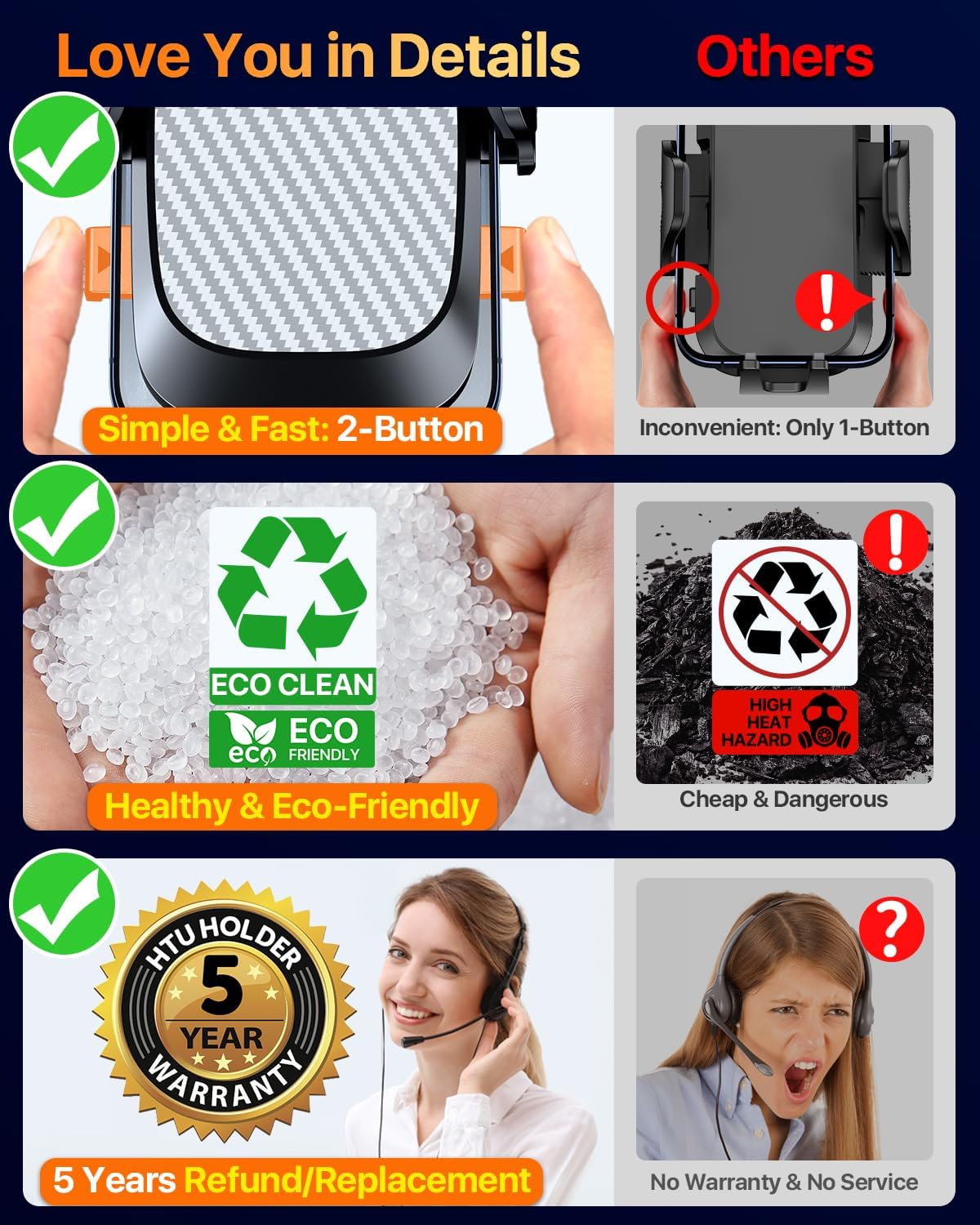 HTU 2025 Best Car Phone Holder 【Ultimate 5-in-1 & Upgraded 100+LBS Strongest Suction】【True Military-Grade & Safety Cert】 360° Windshield Dashboard Vent Mount Stand for iPhone Android & Truck, Grey