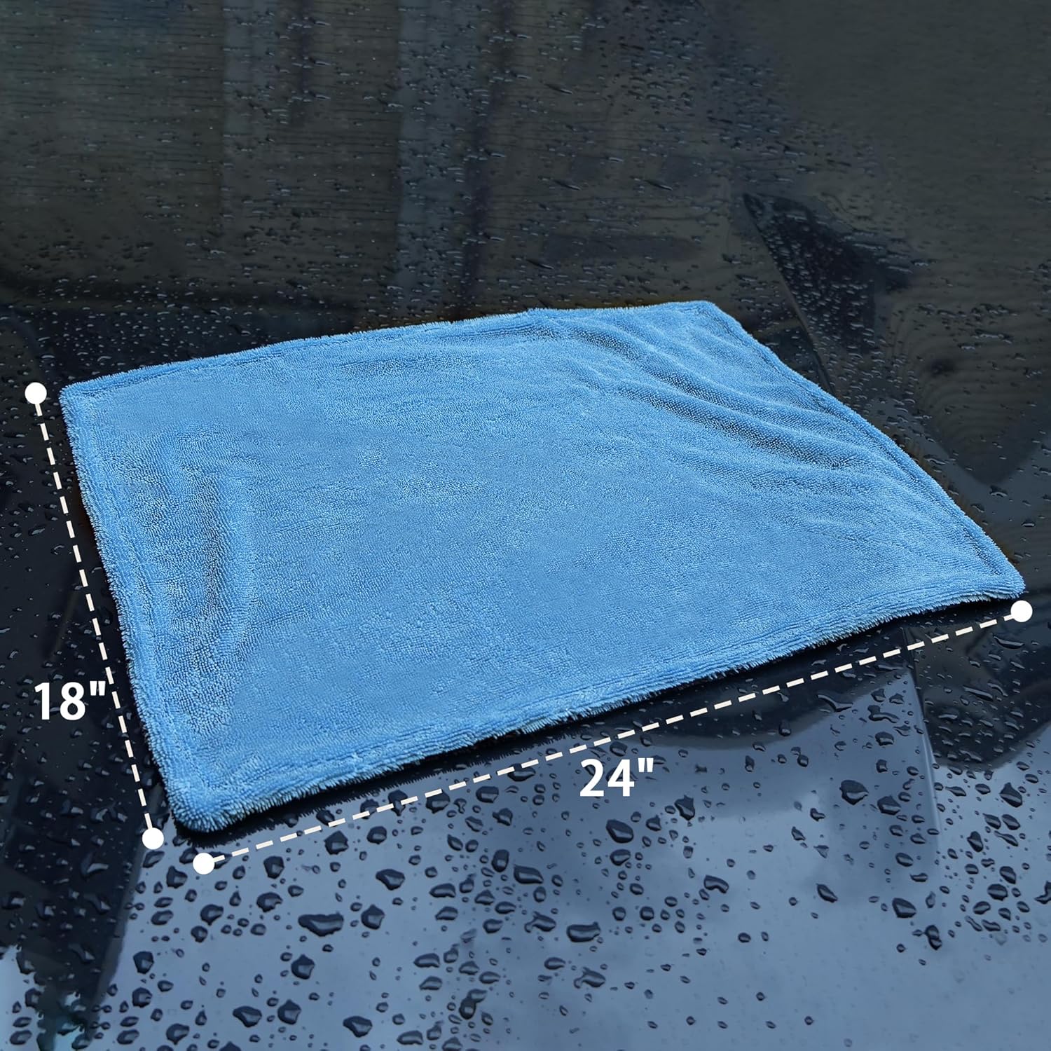 LIVOS Car Drying Towel, Premium Microfiber Towels for Cars, 1000GSM, Edgeless Twisted Loop Design, No Streaks, Scratches, or Water Spot, Absorbent Wash Towel, 18" x 24" (Blue&Grey)
