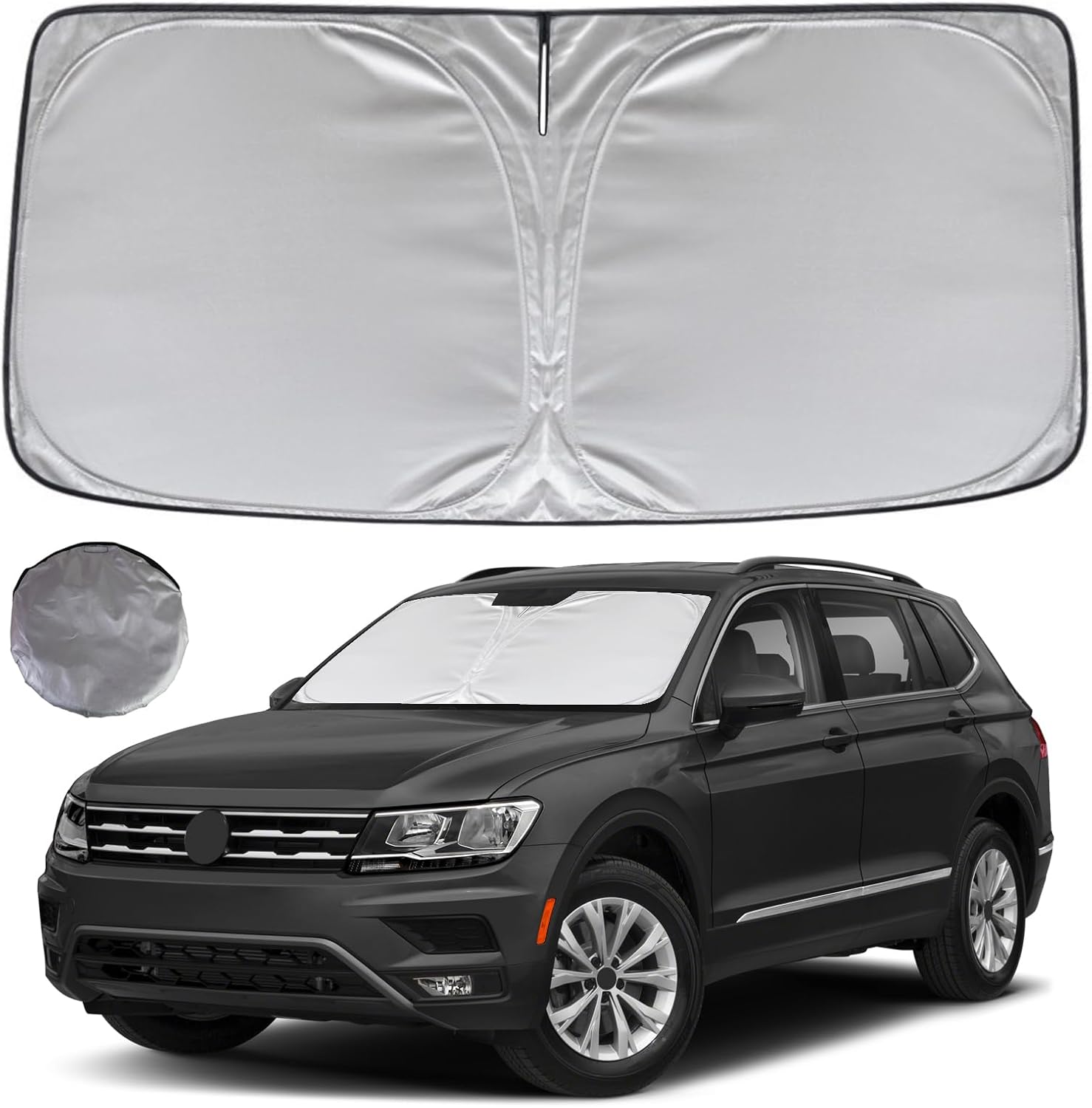 - KAYZT windshield sun shade is precise custom fit for 2018 2019 2020 2021 2022 2023 2024 2025 Volkswagen Tiguan, Thoroughly covers every corner of the windshield, Tailored to accommodate rear view mirror, Ensuring a seamless and snug fit without obstruction, Must have car accessories for VW Tiguan
