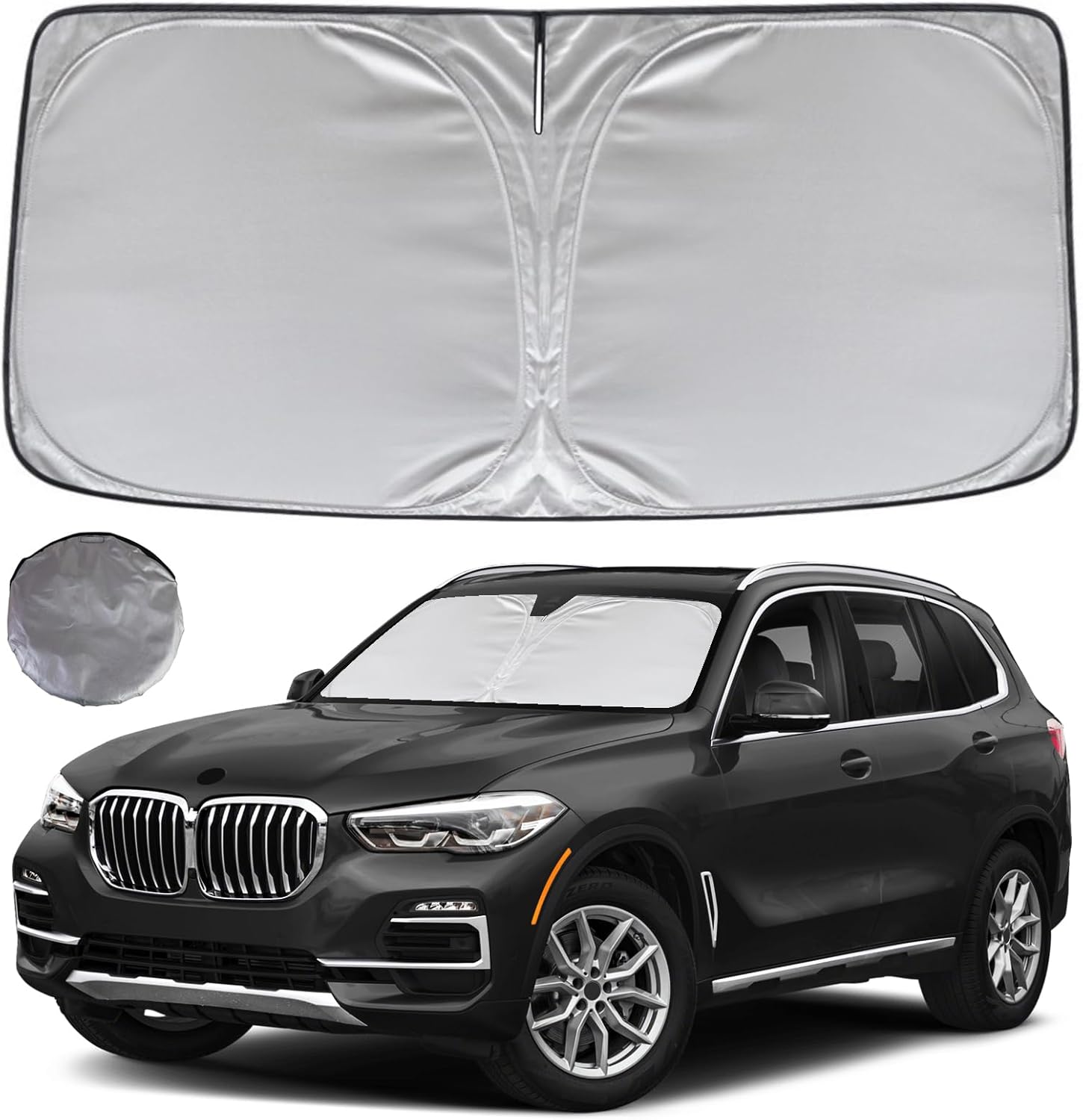 - KAYZT windshield sun shade is precise custom fit for 2019 2020 2021 2022 2023 2024 2025 2026 BMW X5, Thoroughly covers every corner of the windshield, Tailored to accommodate rear view mirror, Ensuring a seamless and snug fit without obstruction, Must have car accessories for BMW X5