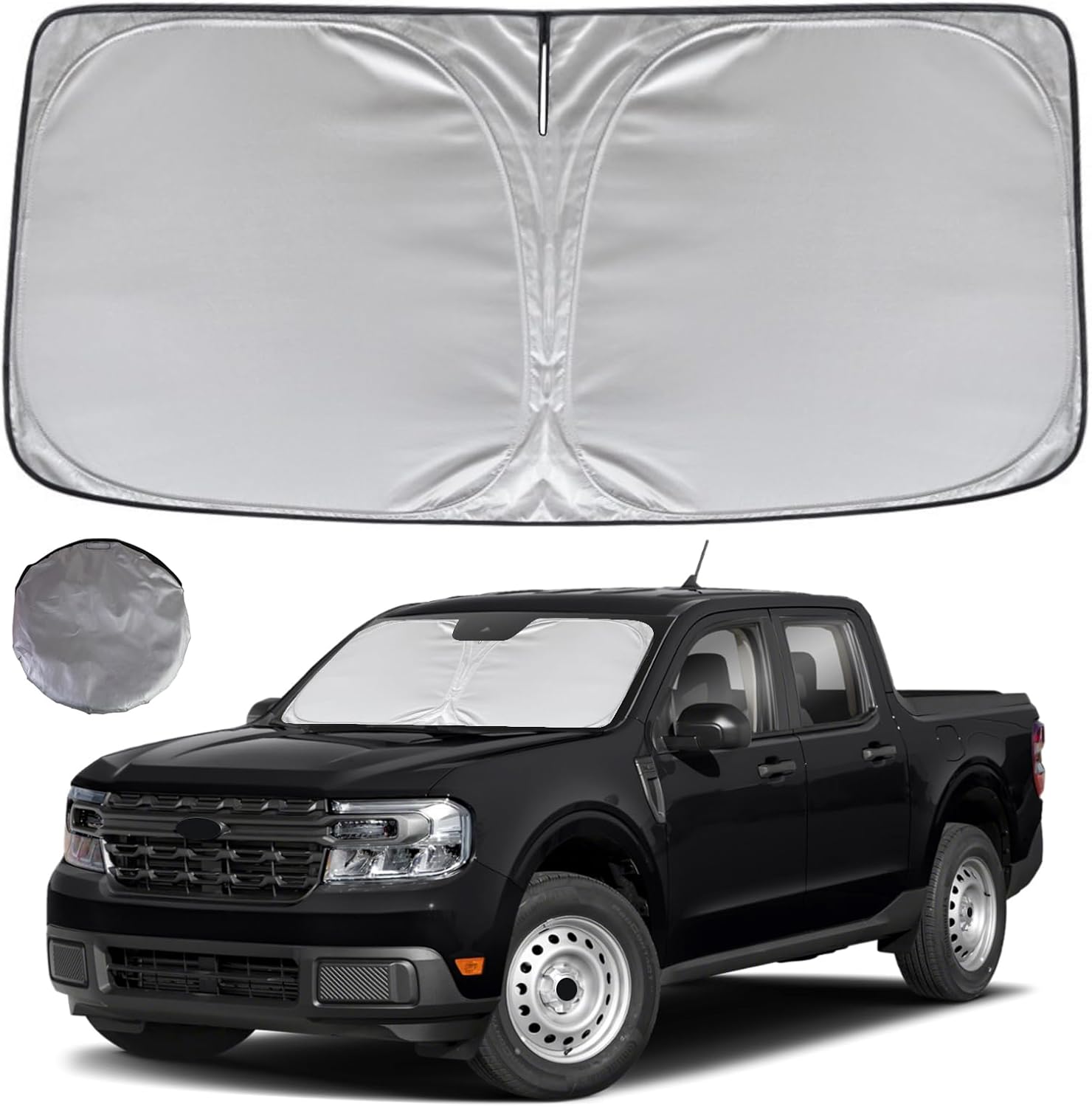 - KAYZT windshield sun shade is precise custom fit for 2022 2023 2024 2025 Ford Maverick, Thoroughly covers every corner of the windshield, Tailored to accommodate rear view mirror, Ensuring a seamless and snug fit without obstruction, Must have car accessories for Maverick