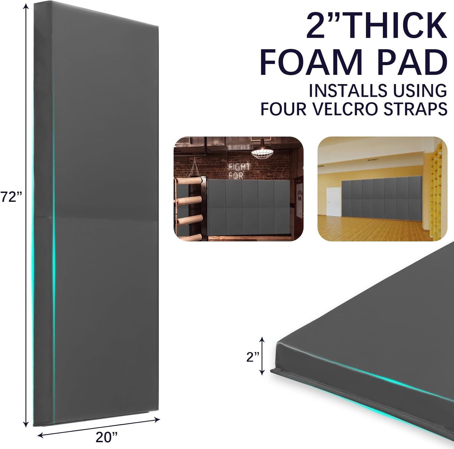 - 💯【Extensive coverage and value】 : Each package includes one smooth dark grey sports protective wall pads, providing a total coverage area of 10 square feet. With pad sizes of 72"x20"x2" they can accommodate various wall sizes, ensuring comprehensive protection.