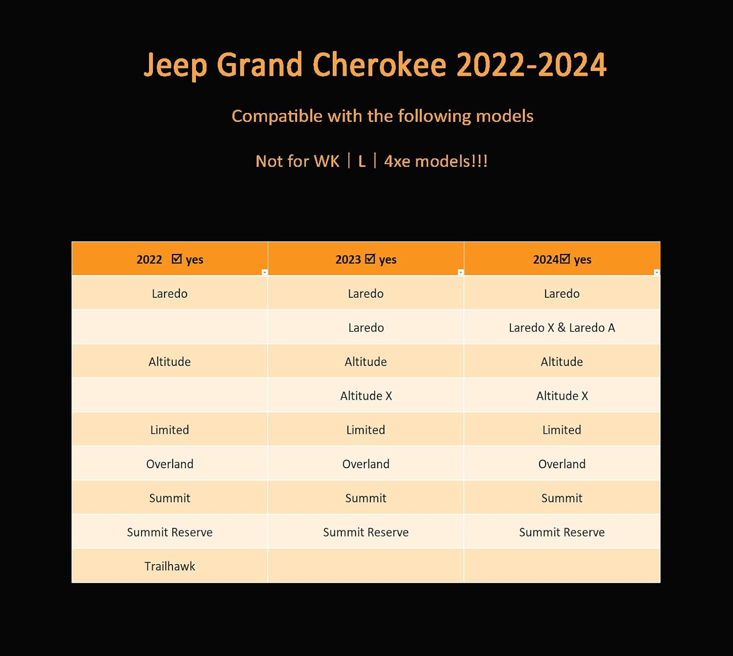 - Material Thermoplastic Elastomer (TPE) : Vehicle Service Type for Grand Cherokee