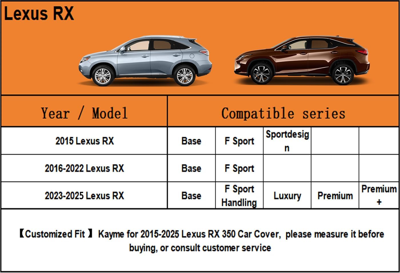 Kayme 7 Layers SUV Car Cover Custom Fit for Lexus RX350 RX 350/RX300/330/350L (2003-2025) Waterproof All Weather for Automobiles, Outdoor Full Cover Rain Sun UV Protection.