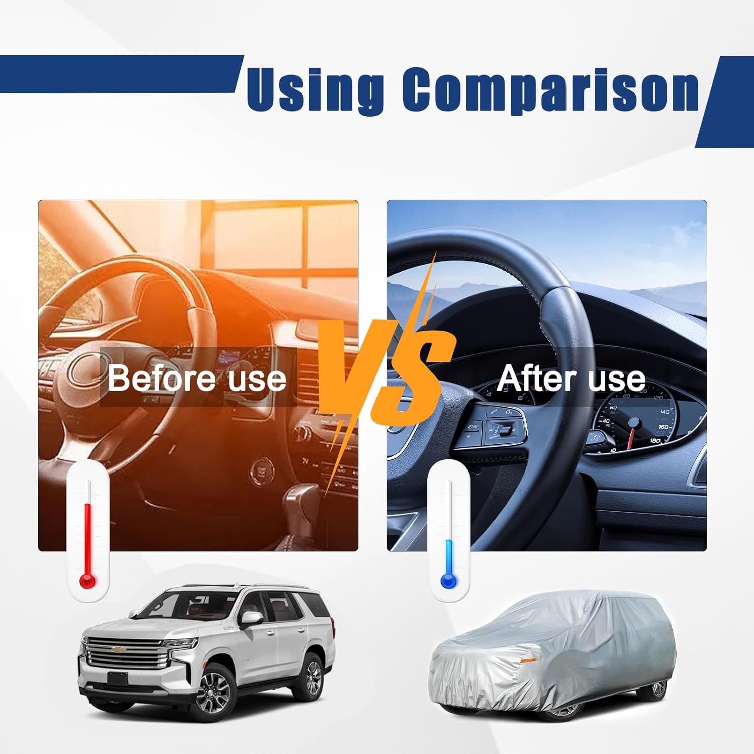 Kayme 6 Layers SUV Car Cover Custom Fit for Chevrolet Chevy Tahoe (2007-2025) Waterproof All Weather for Automobiles, Outdoor Full Cover Rain Sun UV Protection.Silver