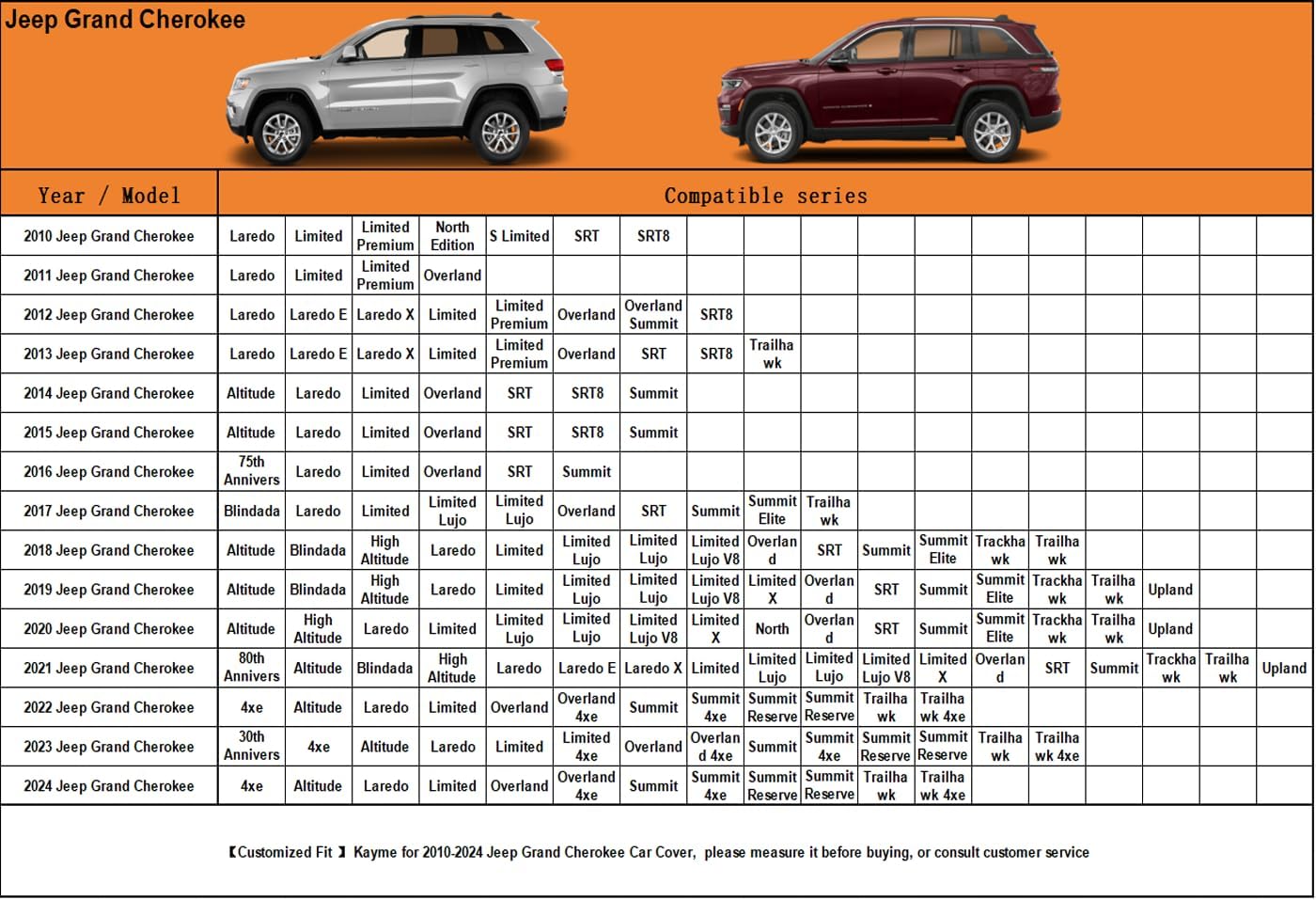 - 【Suitable for】— Custom fit for Jeep Grand Cherokee (2010-2025). Come with a large enough portable bag to store your cover when you do not use
