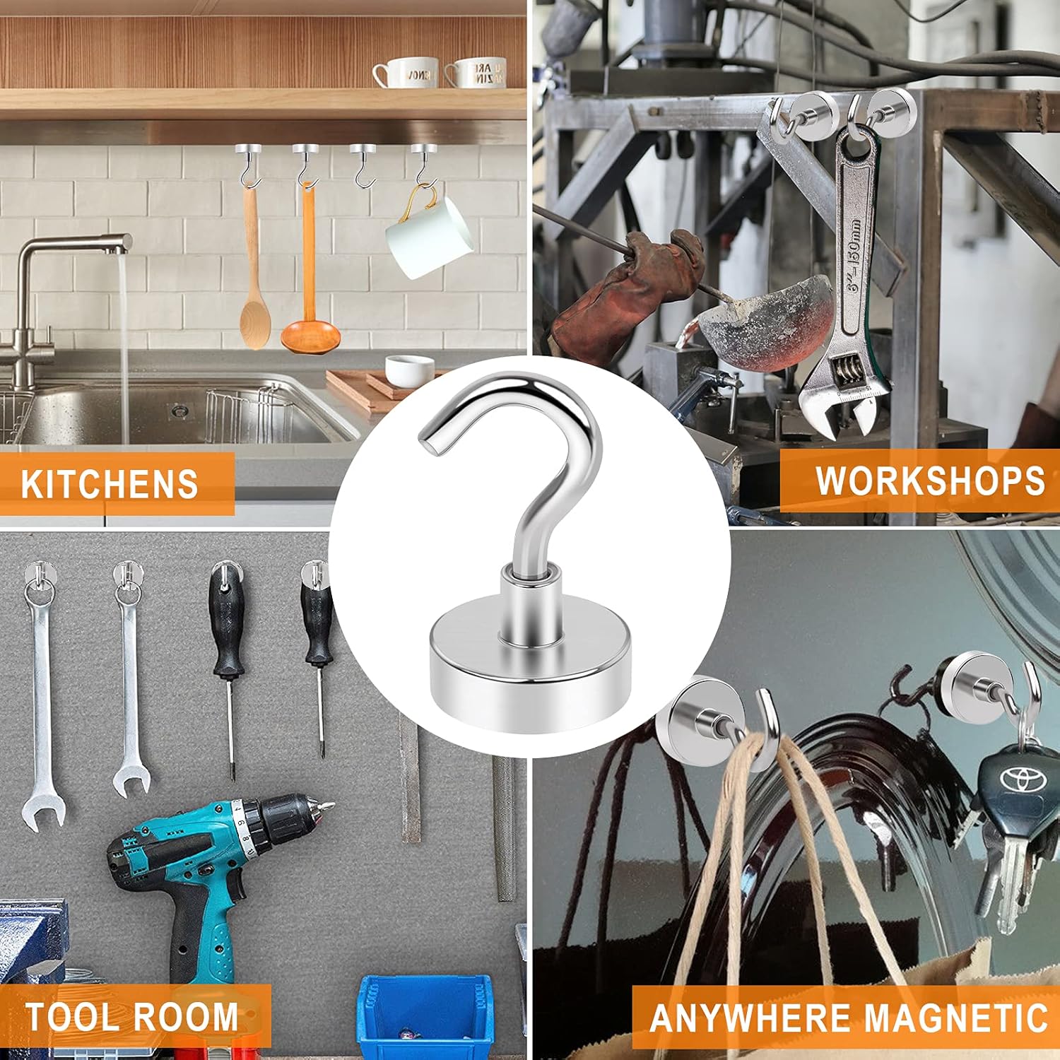 - 【Useful Magnetic Hangers】- Strong magnetic hooks are incredibly useful and versatile! They can be easily removed and fit in anywhere, making them perfect for hanging a wide range of items such as Christmas gifts, kitchen utensils, coats, keys, clothes, barbecue grills, garlands, gardening tools, and more. You can use them in your refrigerator, kitchen, or even outside for various applications. With our magnetic hangers, you have a convenient and flexible solution for hanging all sorts of items