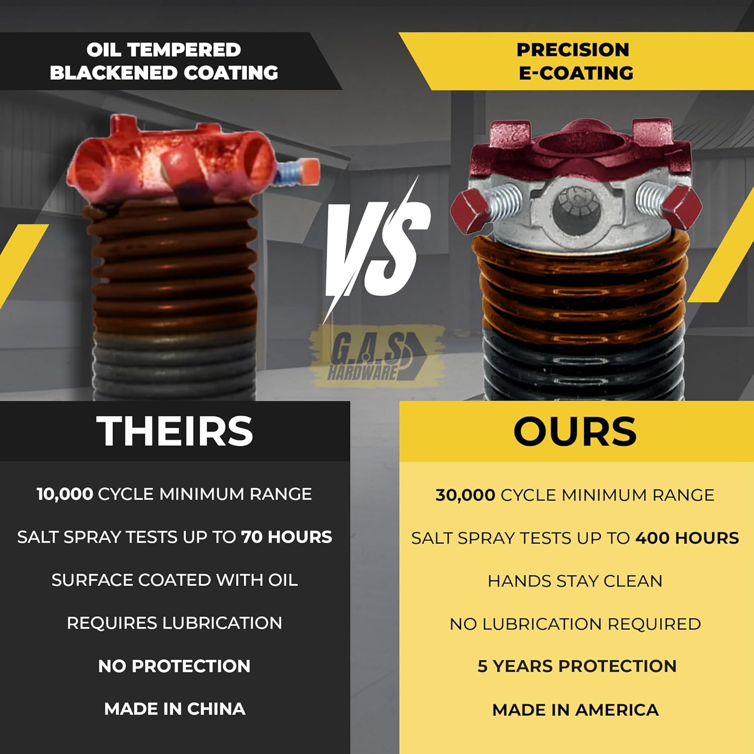 - GARAGE DOOR SIMPLE INSTALLATION: Use G.A.S Hardware high quality garage door torsion springs to replace old broken garage door springs. Having the experience of installing torsion springs can save you a lot of money.