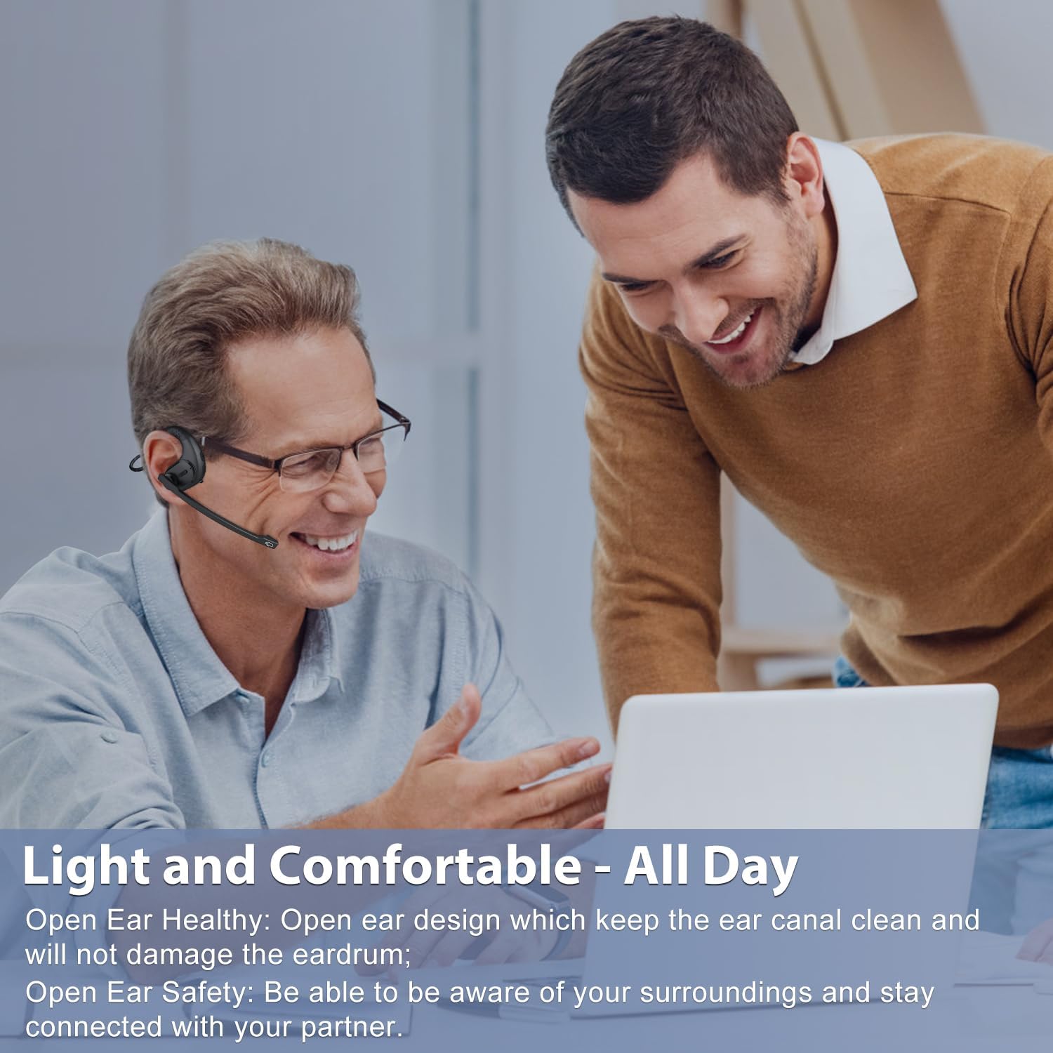 Trucker Bluetooth Headset, Open Ear Headphones with Detachable Noise Cancelling Mic, Wireless V5.3 Computer Headset with Boom Mic for Skype Zoom Face Time