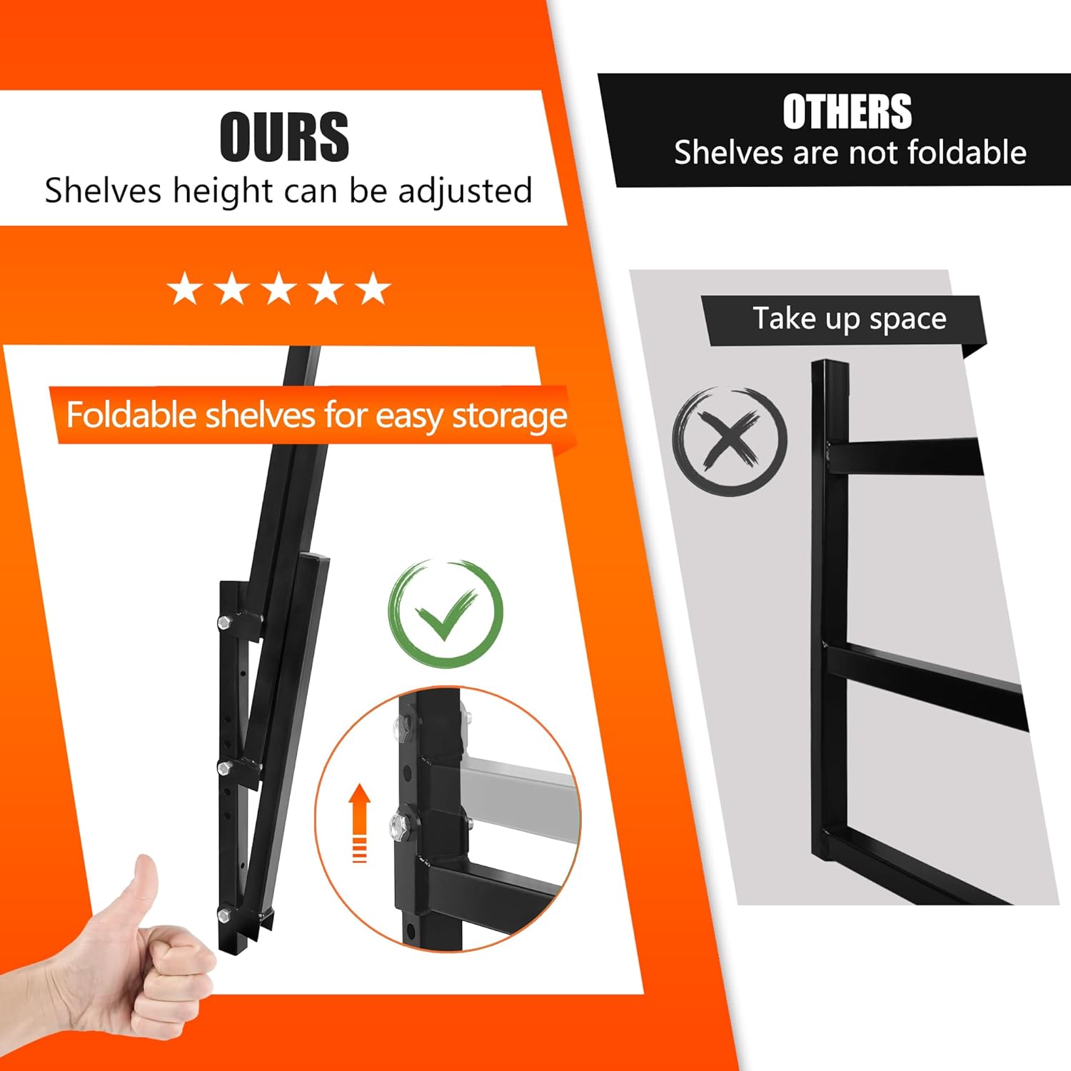 3-Tiered Collapsible Wall Mount Lumber Storage Metal Rack, 3-Level Foldable Heavy Duty Indoor Garage Wood organizer, Outdoor Adjustable Steel Multipurpose Workshop Shelf, Holds up to 330Lbs