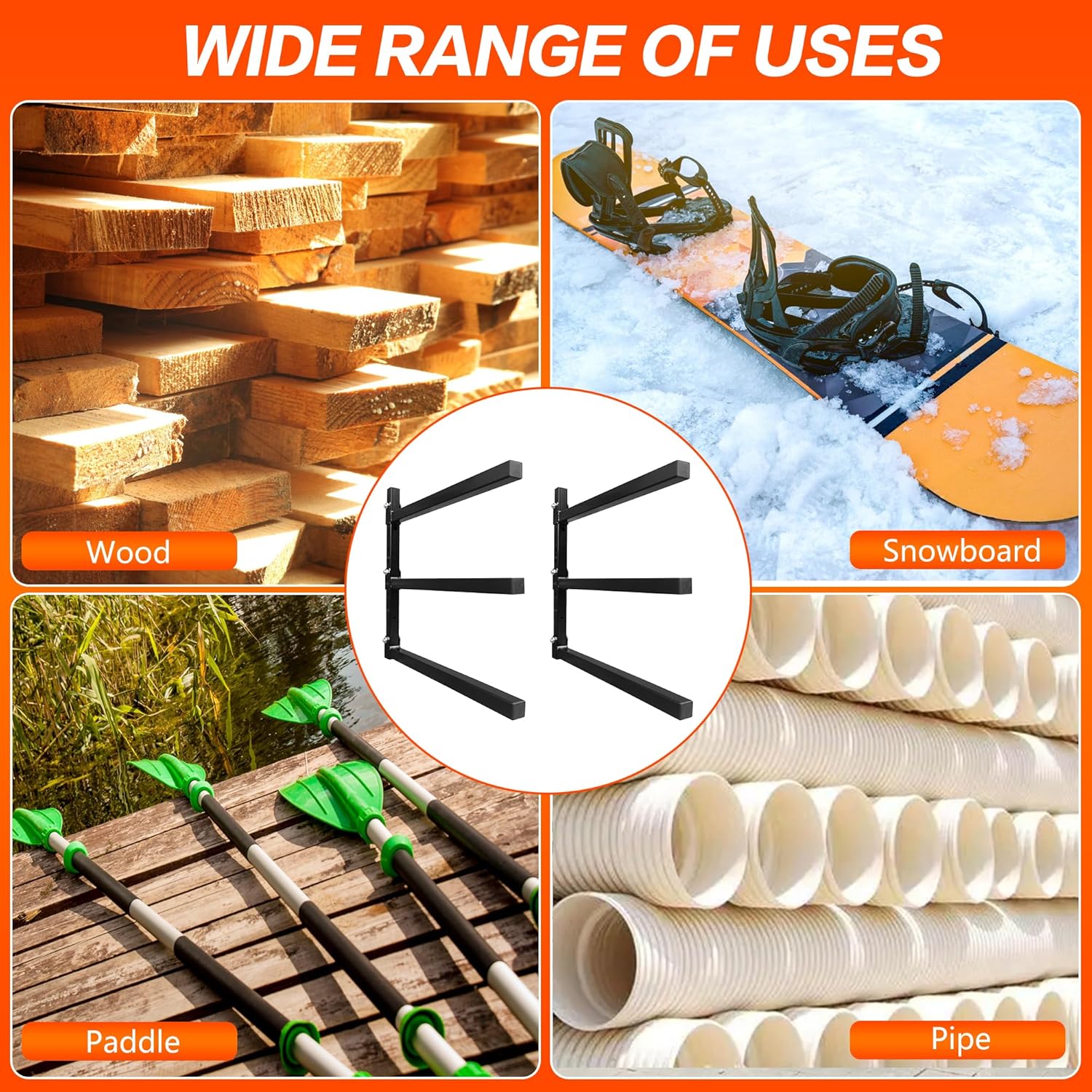 - 【WIDE APPLICATIONS】The wood organizer for wall can be used to place long objects such as wood, pipes, skis and ladders, snowboards, golf clubs, construction tools, etc. This three-layer wood storage shelves is very suitable for your house, workshop, garage, basement, shed and even some outdoor work areas. It is a very practical storage rack.