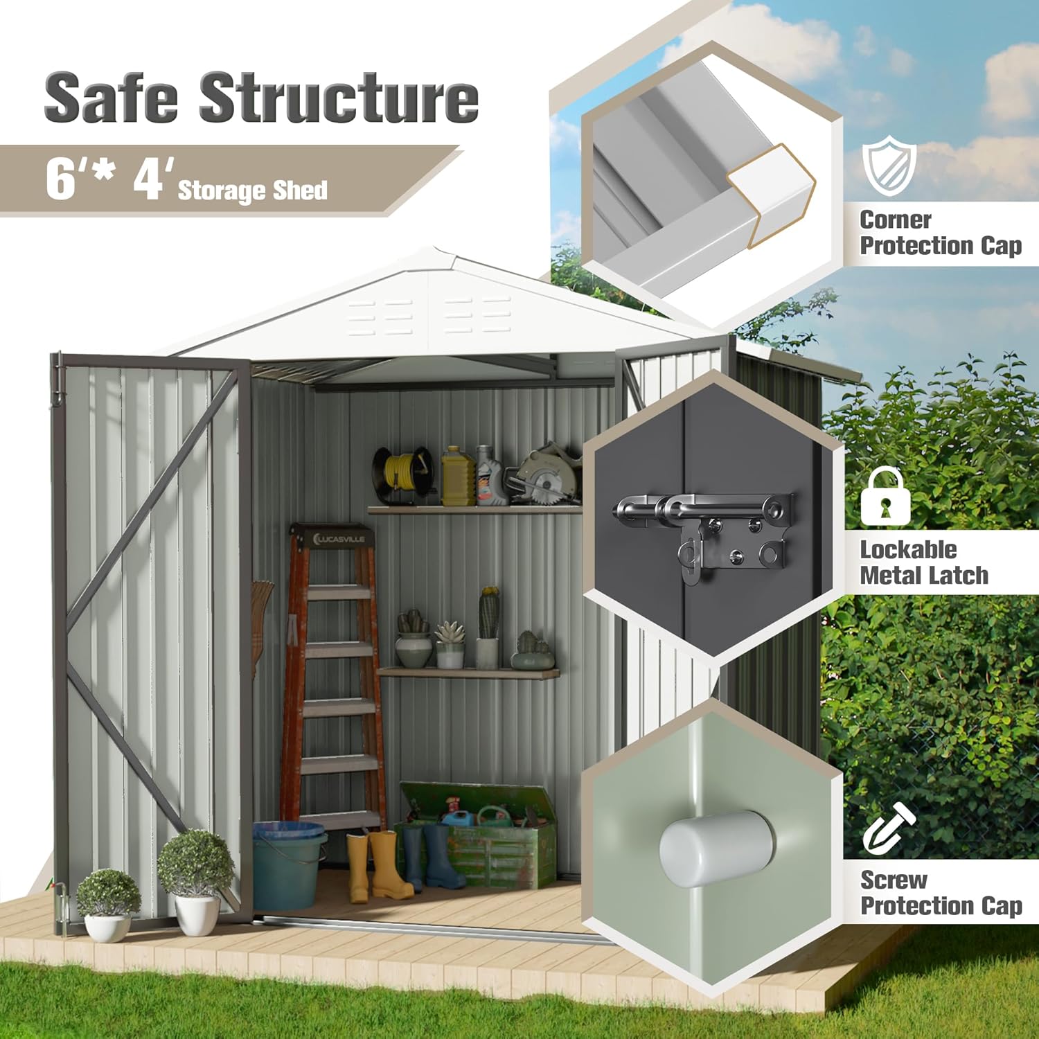 JUMMICO Metal Outdoor Storage Shed 6 x 4 FT Metal Shed with Lockable Door,Waterproof Garden Tool Shed Storage House for Backyard Patio Lawn,Grey
