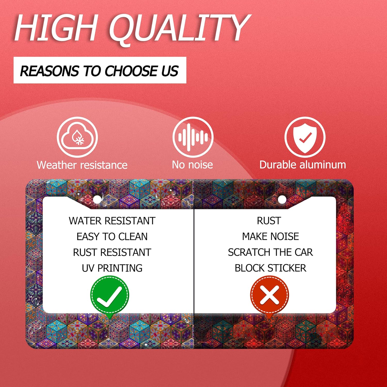 - 【Excellent Printing Concept】Use Advanced digital printing Protects license plate frames ,Whether it's a car wash, heavy rain or hot weather, it still looks brand new,Let your car still be unique and stylish while driving on the road.