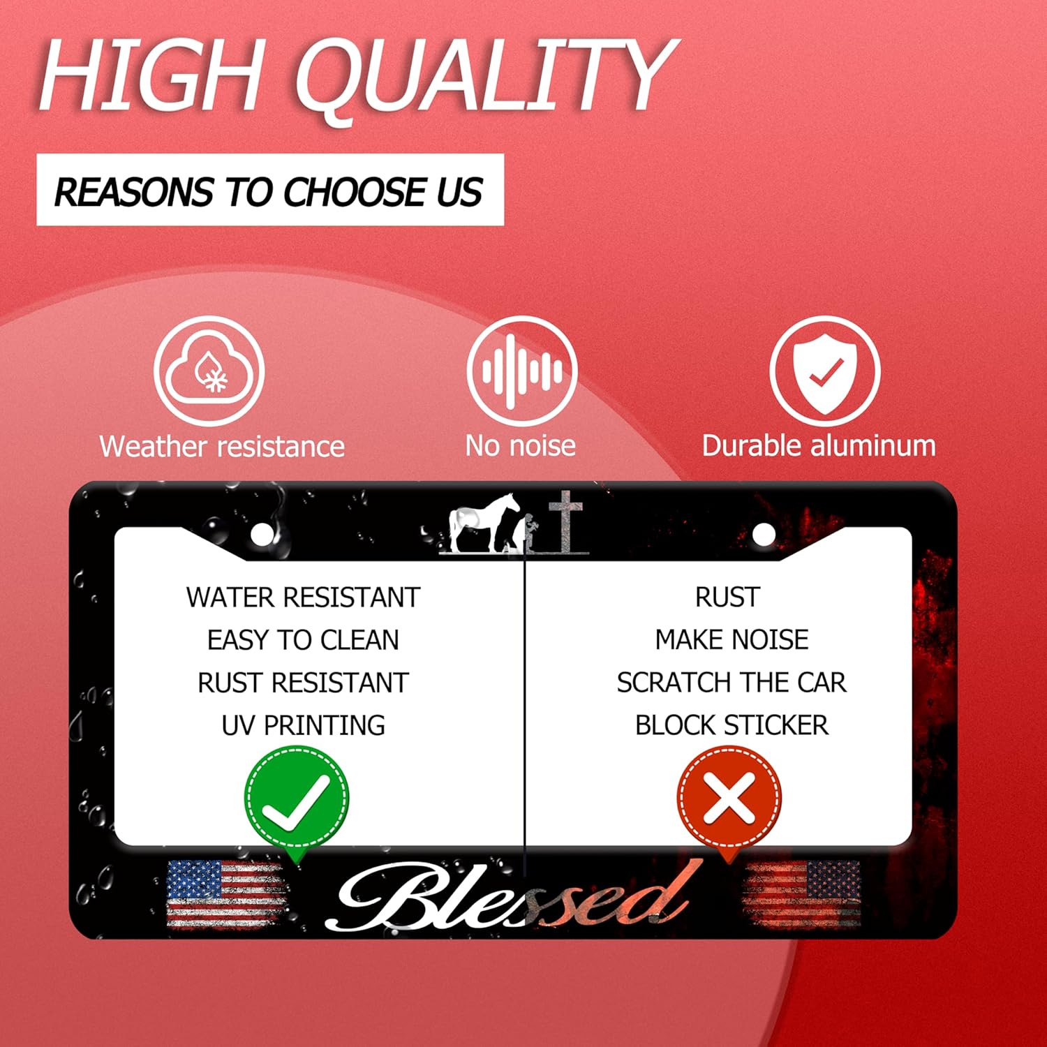 Blessed American Flag License Plate Frame Cross Pray for US License Plate Frames Stainless Steel Accessories Cars Decor with 2 Holes and Screws Fits Standard US CA Vehicles Size 12.2 x 6 Inches