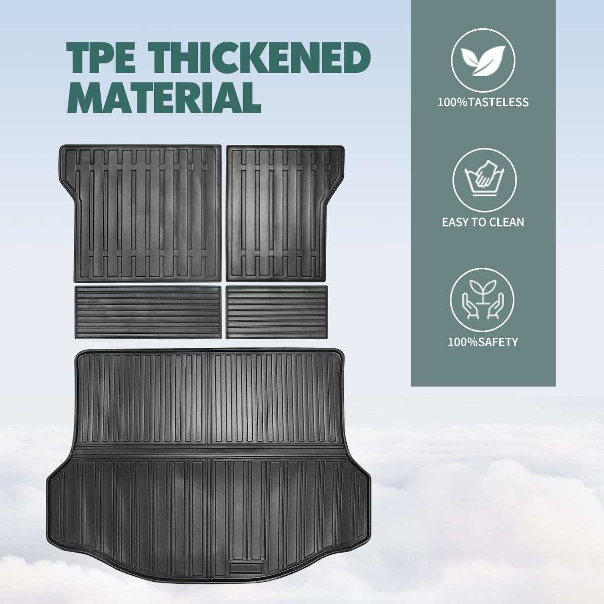 - 1.Toyota RAV4 Custom Accessories: Cargo Liners and rear trunk backrest mats in a 5-piece set. These mats are precisely measured and designed to fit the Toyota Rav4 2013 2014 2015 2016 2017 2018