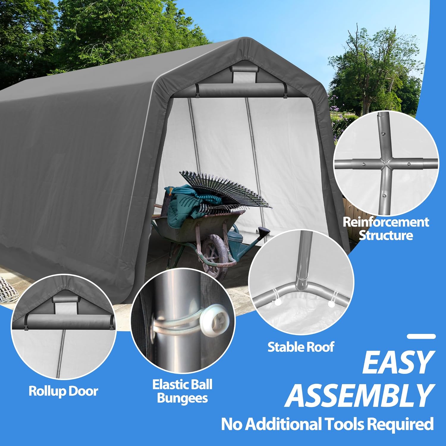 8' x 14' Outdoor Storage Shelter Shed, Portable Storage Shed Heavy Duty Portable Garage with Roll-up Zipper Door for Generator, Vehicles,Motorcycle