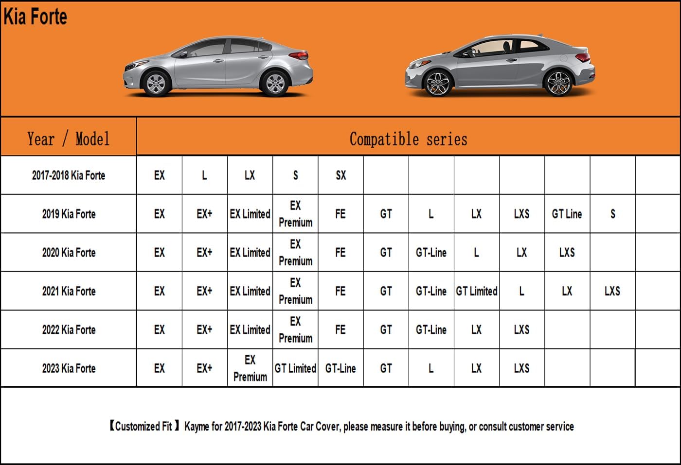 - 【Suitable for】— Custom fit for Kia Forte (2017-2025). Come with a large enough portable bag to store your cover when you do not use