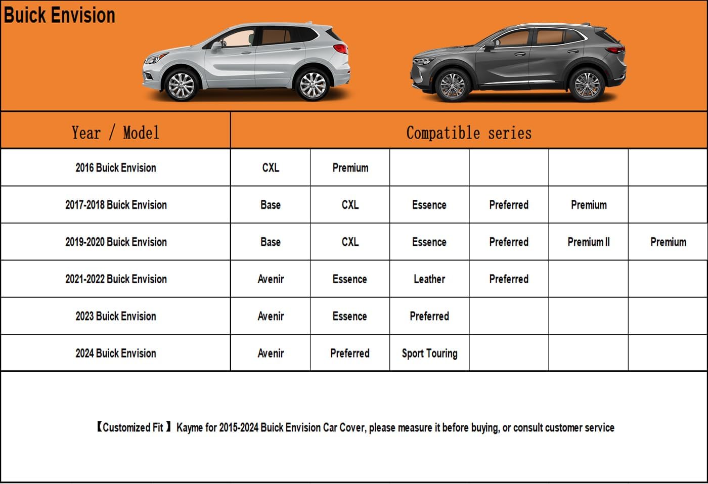 - 【Suitable for】— Custom fit for Buick Envision(2015-2025). Come with a large enough portable bag to store your cover when you do not use