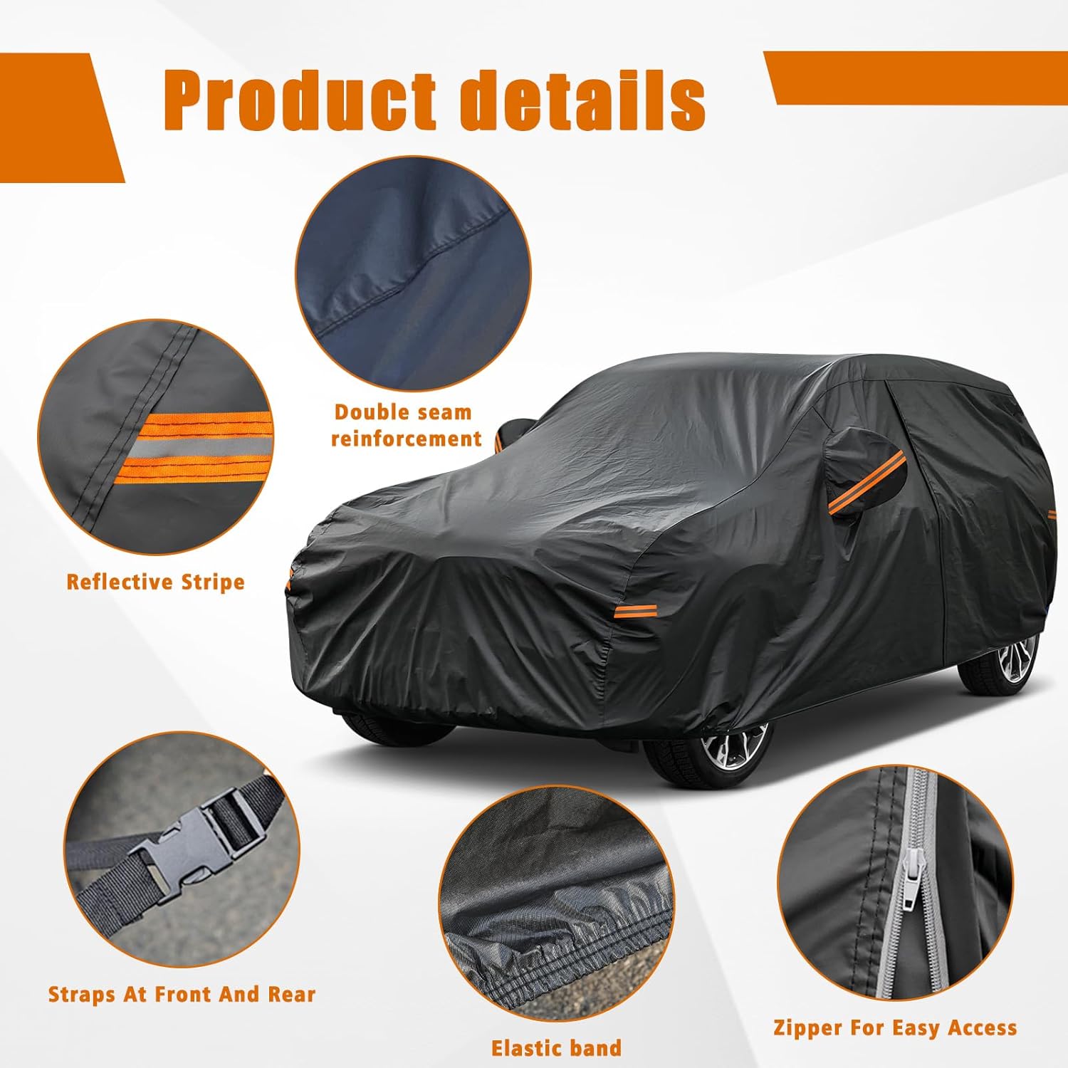 - 【Unique Design】1 Driver door zipper for easy access. 2 Windproof straps at front & rear to fix your auto cover in heavy wind. 3. reflective strips, Remind other people at night. 4. Mirror pockets make the cover fit your vehicle better.