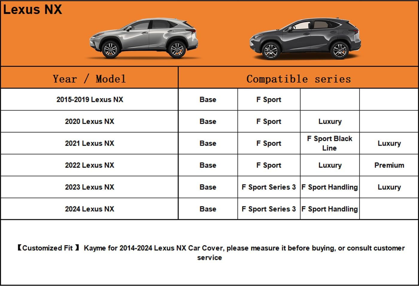 - 【Suitable for】— Custom fit for Lexus NX (2009-2025). Come with a large enough portable bag to store your cover when you do not use