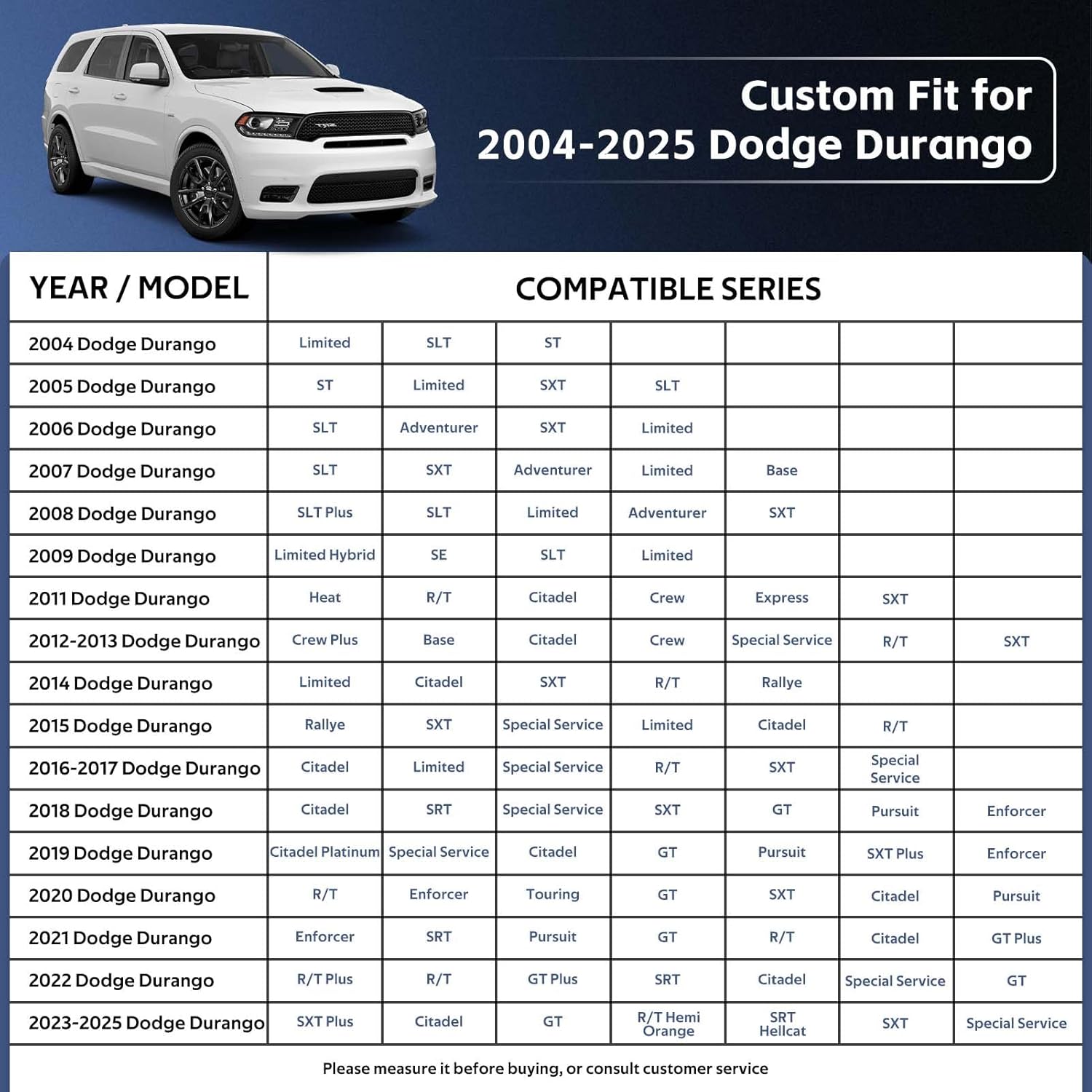 - Material Polyethylene : Vehicle Service Type Dodge Durango (2004-2024)