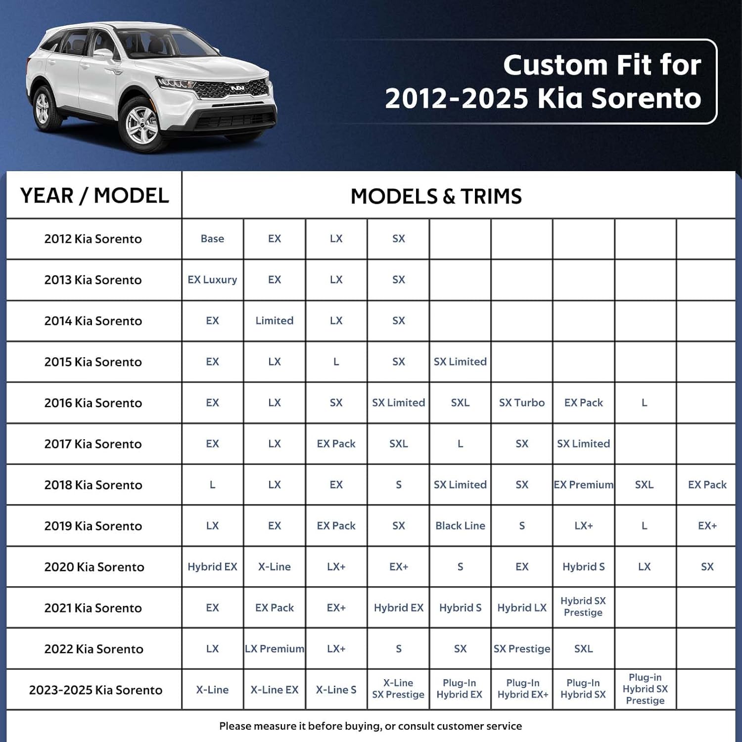 - Material Polyethylene : Vehicle Service Type Kia Sorento (2012-2024)