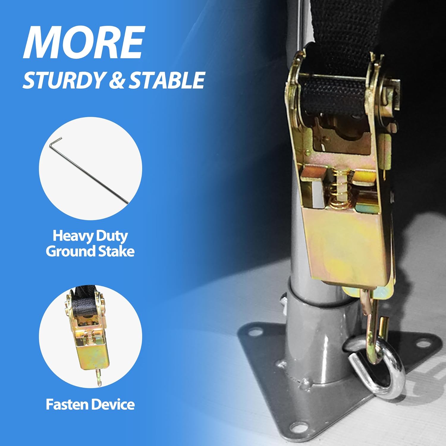 - âť—For long term use and safety, please make sure to use rope, ground anchors for stability.If you want to place it on the grass for a long time, you need to pour cement around the legs and fix it with expansion screws to ensure stability. (Expansion screws need to be purchased by yourself. )