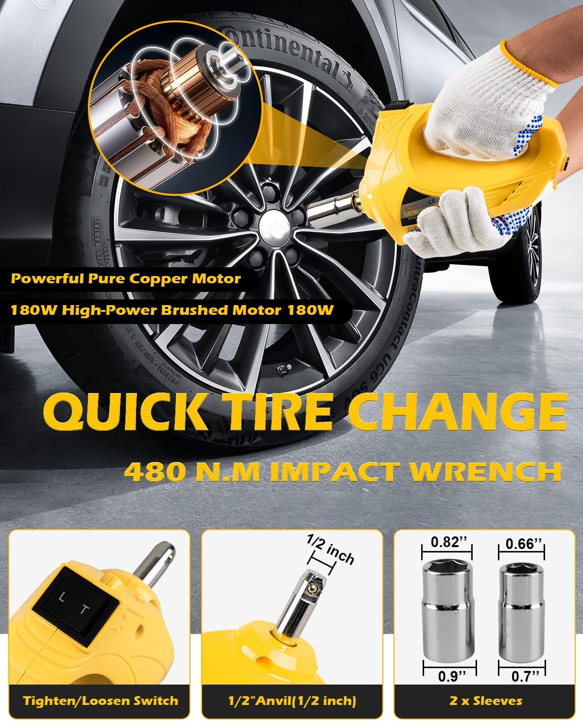 - 【Multi-purpose】is not only a high-performance electric hydraulic jack, but also equips you with an electric wrench with a maximum torque of 480 N.M, a 25-cylinder inflator pump, and a quadruple high-efficiency LED light bead, which makes it easy to change a tire no matter if you encounter the wilderness or a pitch-black night.