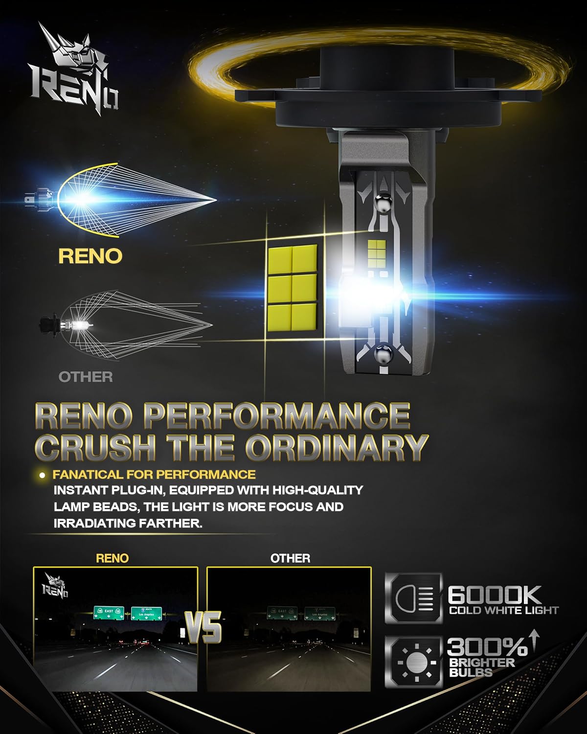 - 5 Mins Installation: RENO H4 with a small base, and H4 lights can be installed independently without any tools, plug and play