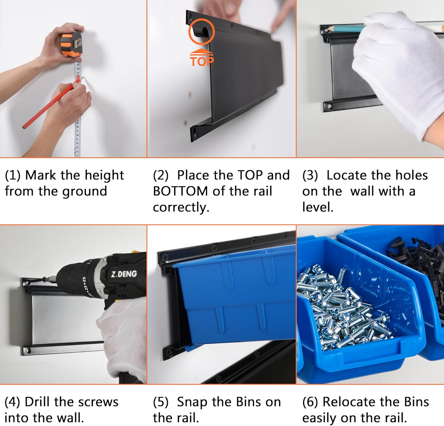 - OPEN DESIGN & EASY TO INSTALL - The lid-free, open design makes it easy to see what’s inside each compartment and also keeps your parts and hardware readily accessible. With 3 rails mounted on the wall, the bins can snap on the rails easily.