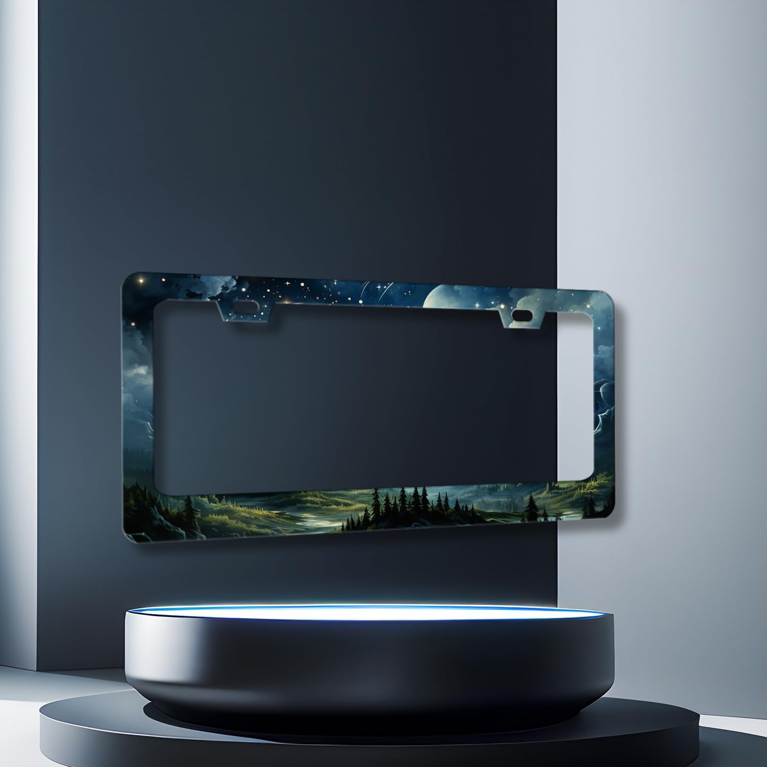 Watercolor Sky Clouds License Plate Frame Beautiful Stars Forest License Plate Holder Stainless Steel Colorful Car Accessory Funny License Plate Decoration Size 12.2"x6.2" with Screws