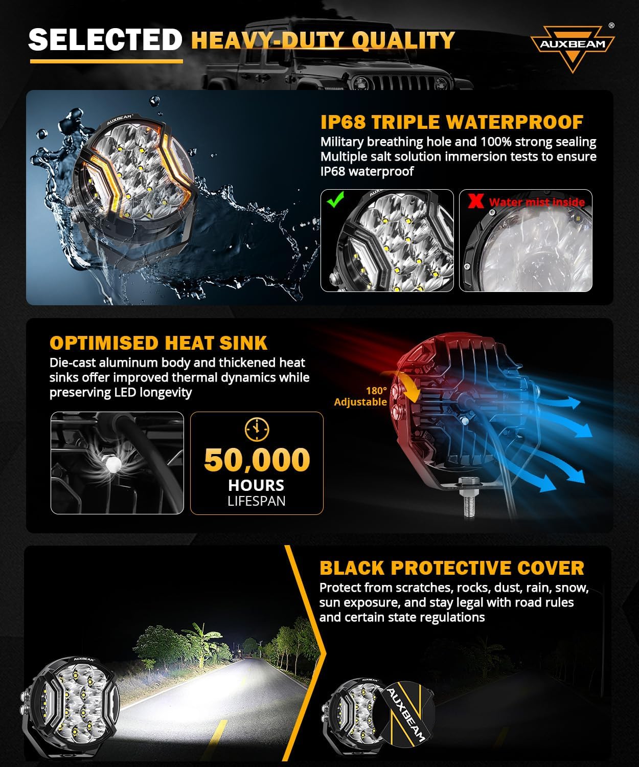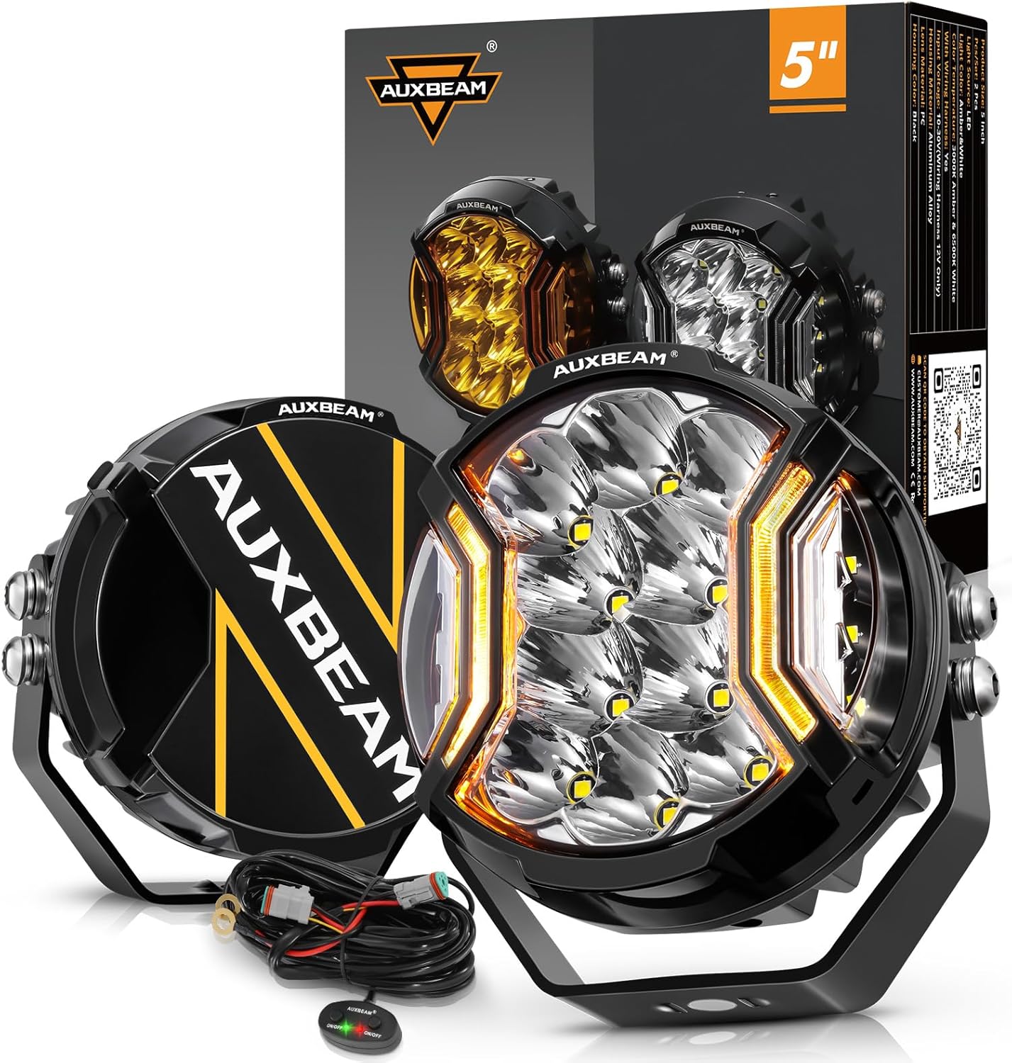 - 【Trustworthy Brand Guarantee】Choose Auxbeam to join a legacy of trusted performance and rugged dependability. 𝐖𝐡𝐚𝐭'𝐬 𝐢𝐧 𝐭𝐡𝐞 𝐛𝐨𝐱 [2* round offroad lights, 2* black covers, 1* DT wiring harness, 1* mounting kit, 1* user guide, 1* sticker.] 24-month guarantee and 24/7 customer support, we're always here to be your backup.