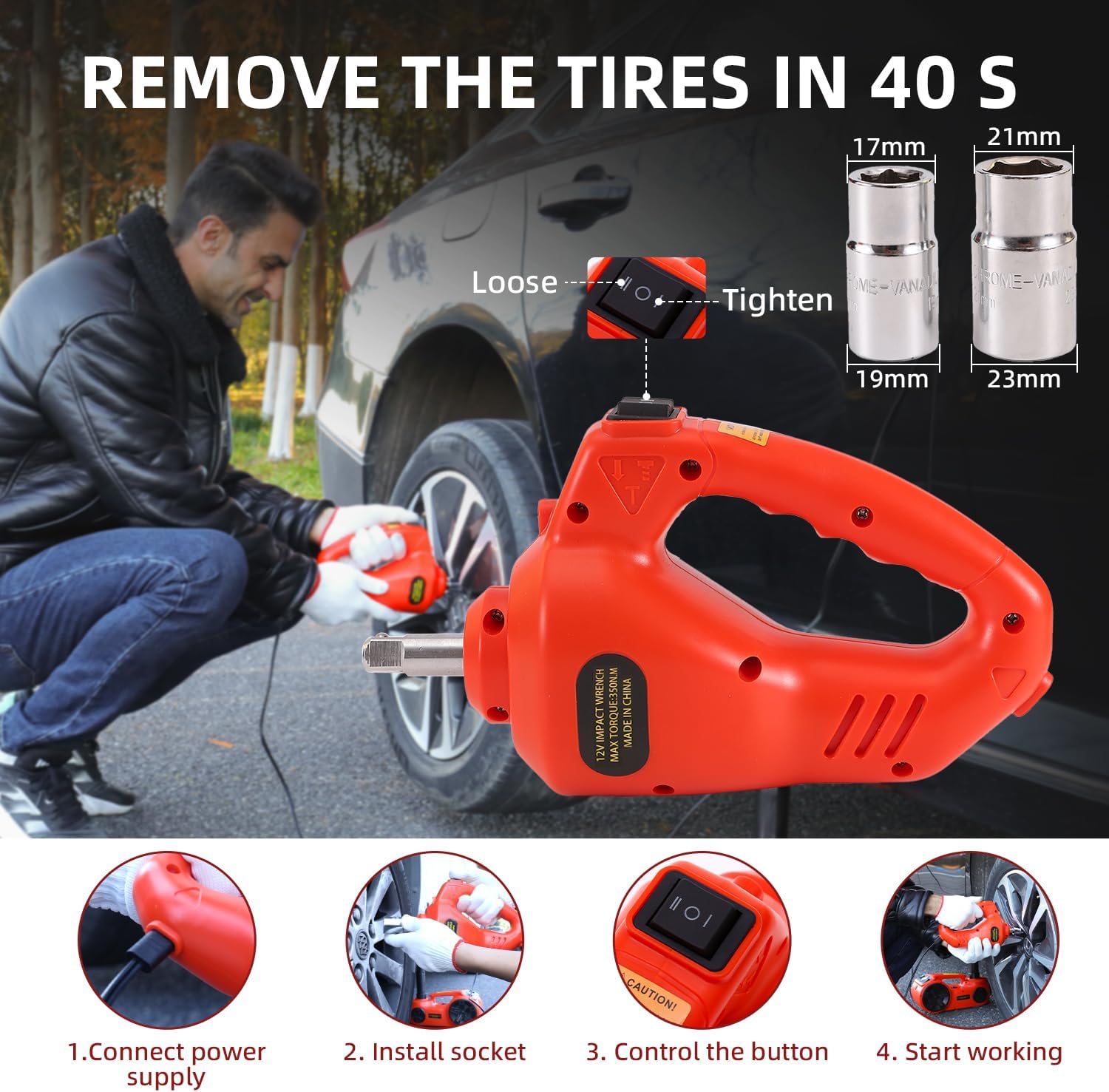 - Rich and diverse functions include electric impact wrench and tire inflator pump portable hydraulic, making this car jack kit 5 ton 12v floor jack with impact wrench ideal for roadside emergencies