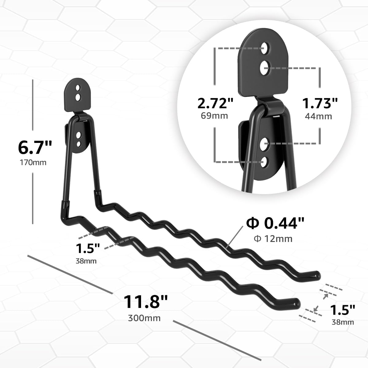 Garage Hooks, Large 2-Pack Shed Storage Hanger 11.8" Long Heavy Duty Wall Mount Double Holder with 2 Extension Cord Storage Straps, Organize Yard Utility Garden Tool Hanging Ladder Black
