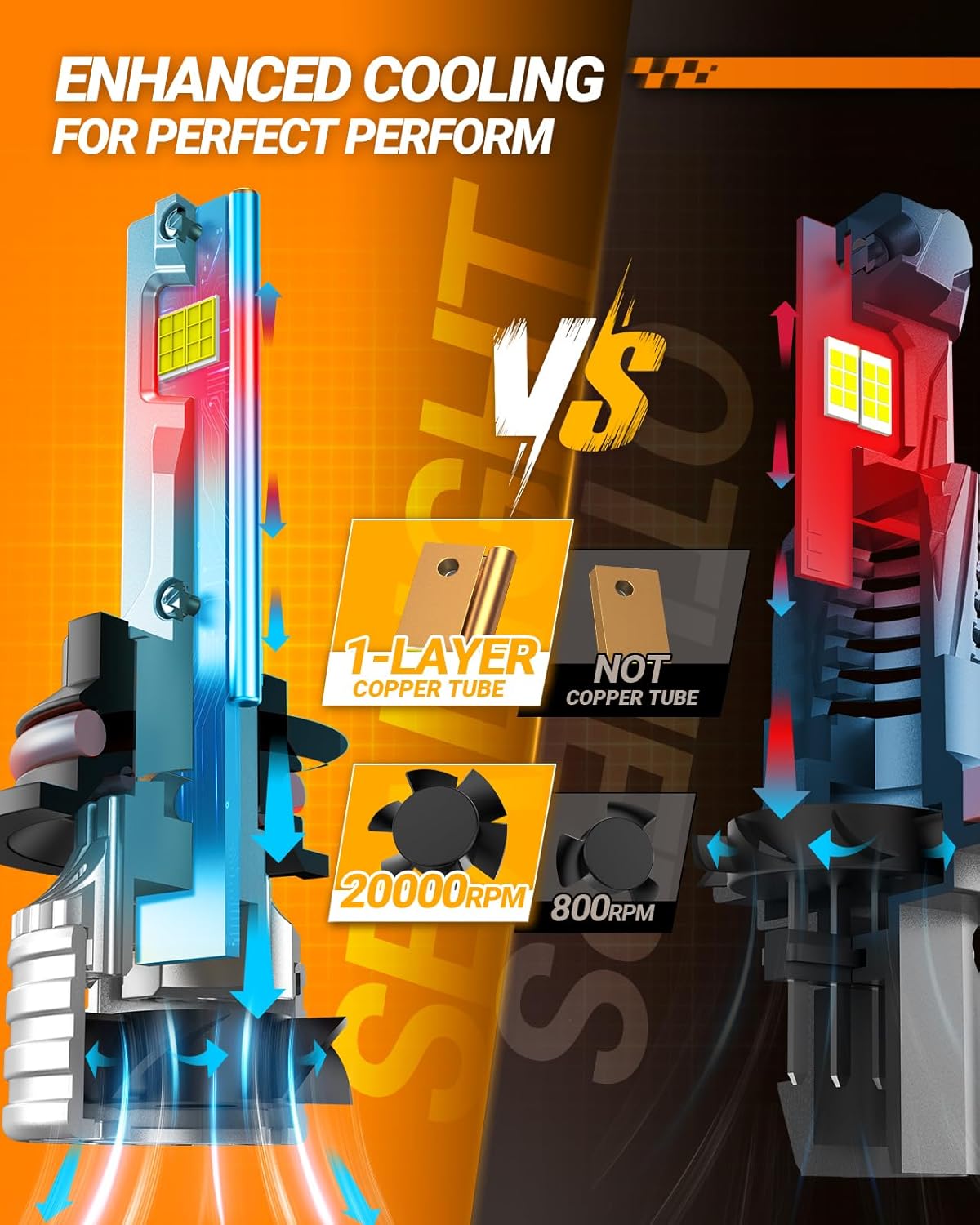 - Over 50,000 Hours Long Lifespan: The double cooling copper tube and 20,000 RPM cooling turbo fan helps speed down the core temperature, reached a perfect balance of long-lasting lighting and service life.