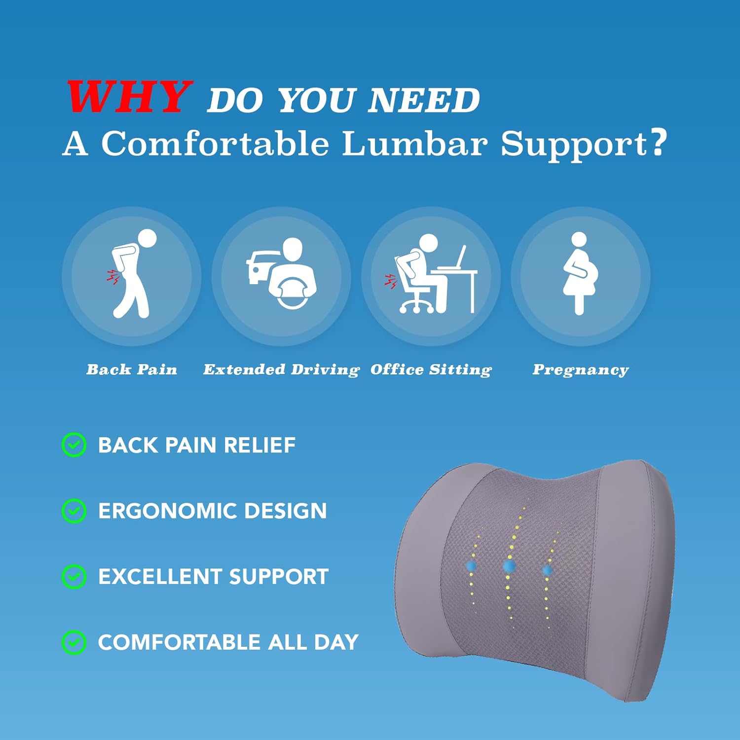 Lumbar Support Pillow for Car, Memory Foam Lumbar Pillow for Lower Back Pain Relief - Back Cushion for Driving, Chair Support for Car-Office Chair, Wheelchair - Gray