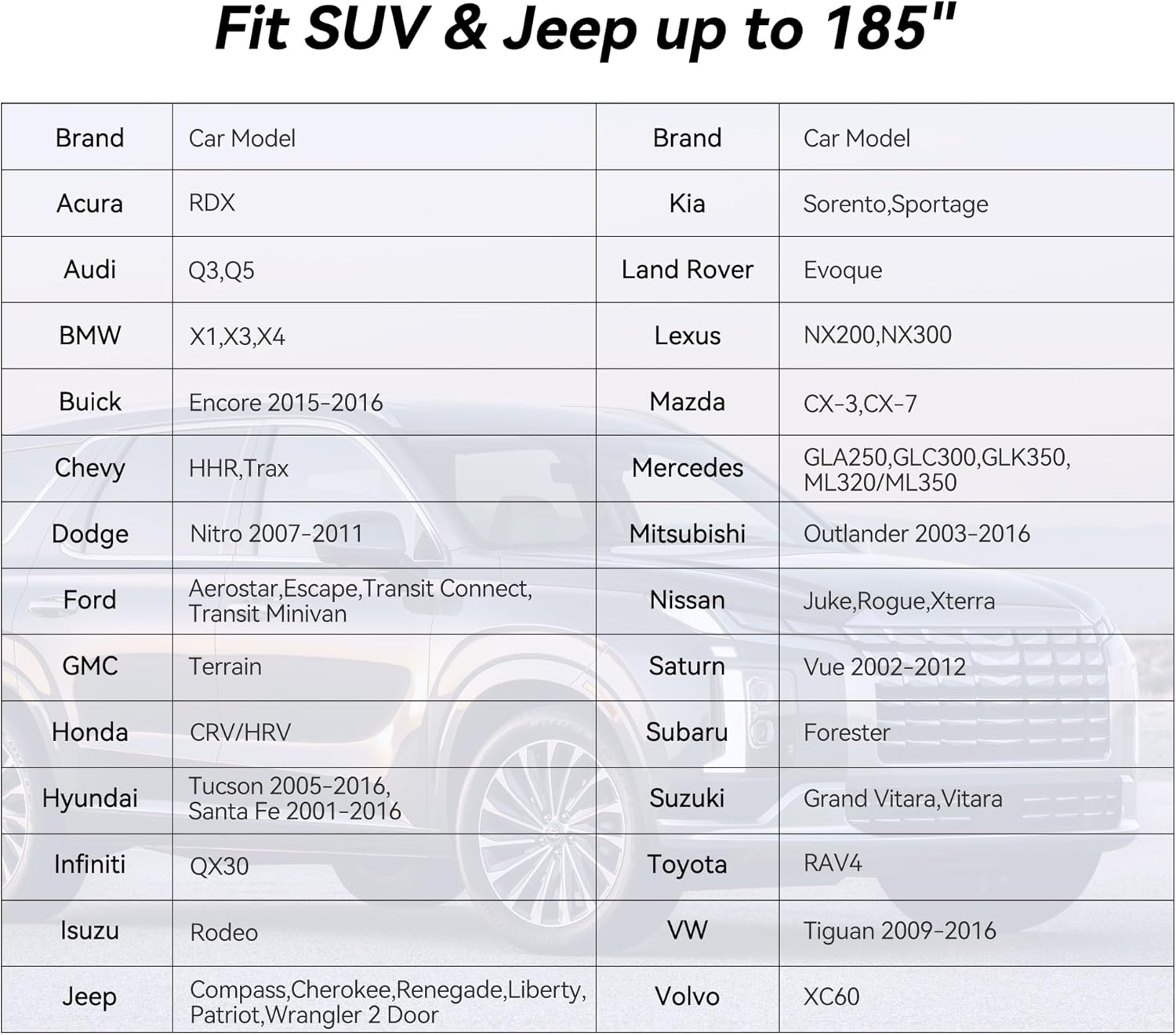 - 【Choose the Right Model】Universal fit for SUV which length is up to 185 inch.See the product images for applicable vehicle models.The universal car cover comes with a storage bag,you can store it easily when not used.
