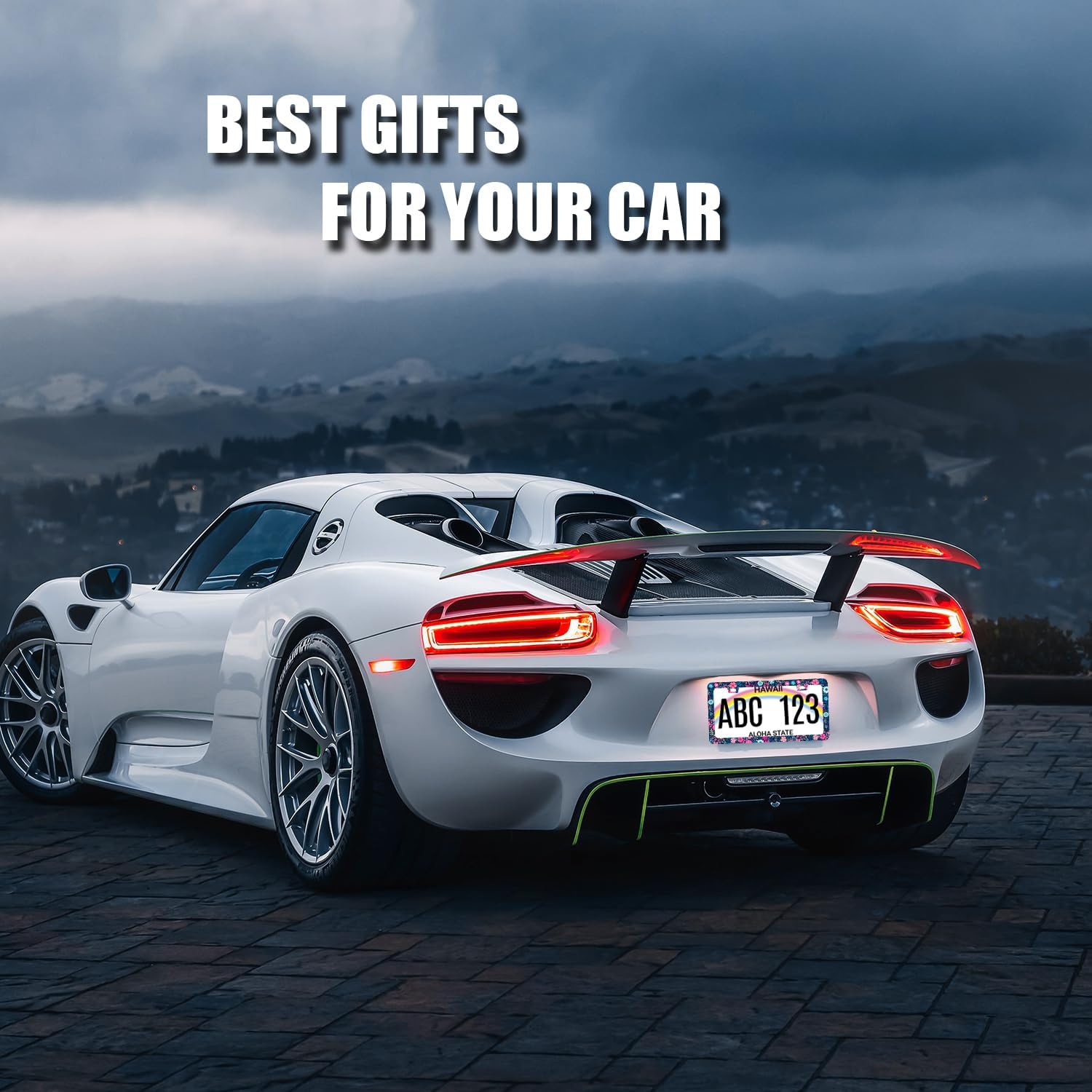 Colorful Flowers License Plate Frame Beautiful Floral Flower License Plate Holder for Women Car Decorative Stainless Steel Cute License Plate Flowers Auto Parts with Screws 12.2"x 6.2"