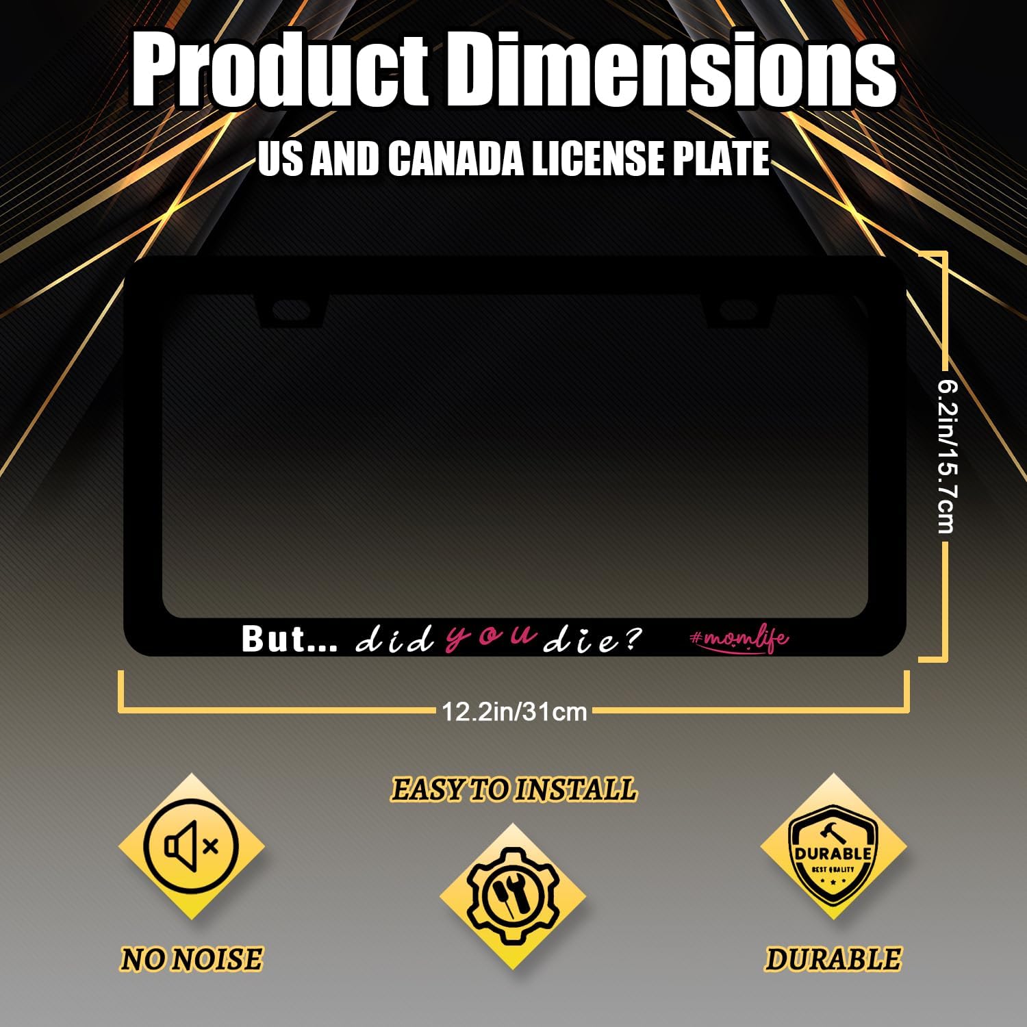 But Did You Die Momlife License Plate Frame Mother License Plate Holder for Personalized Mother Car Decorative Stainless Steel Funny Text License Plate Auto Part with Screws 12.2"x6.2"