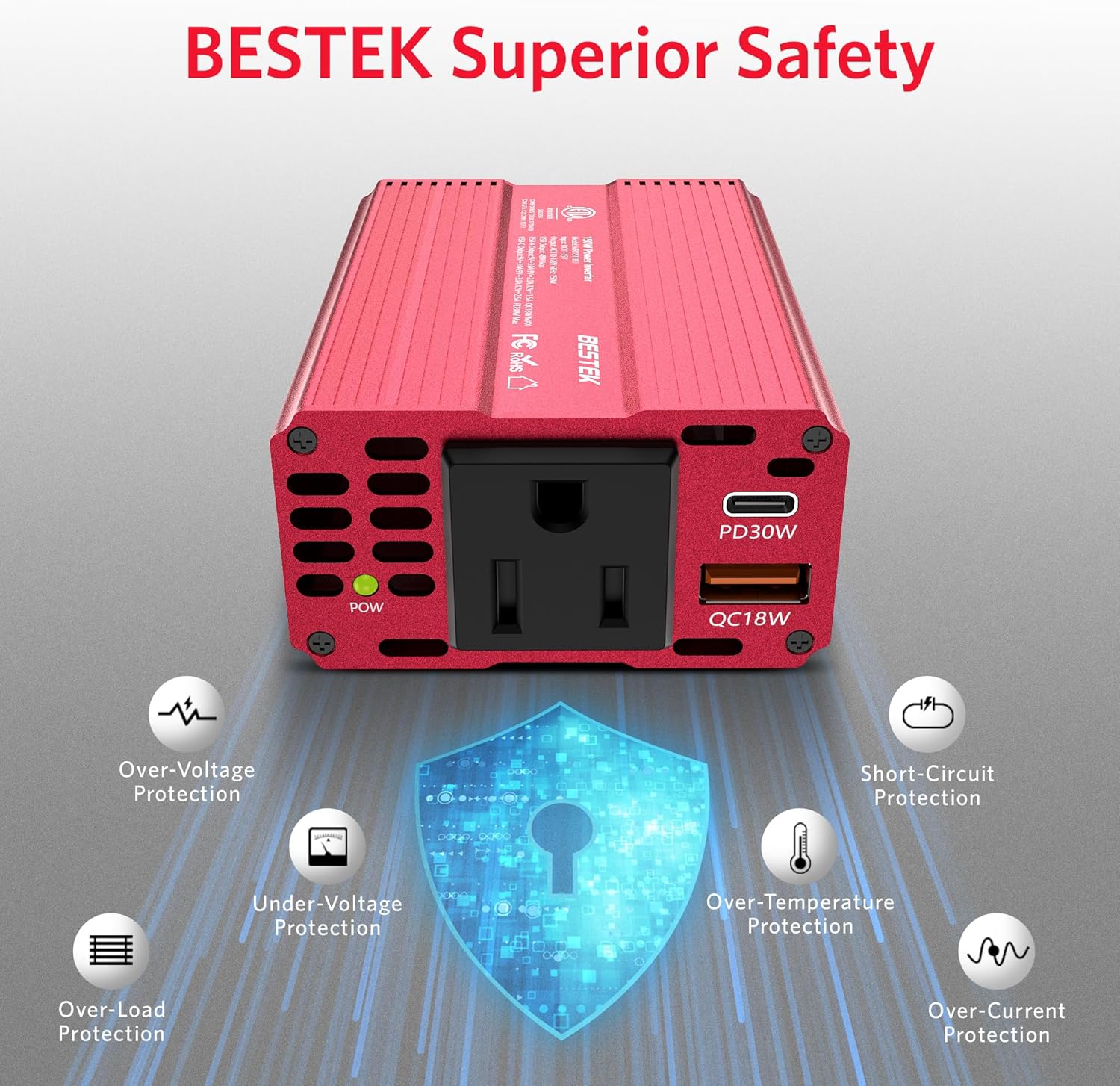 - Isolation Voltage Protection: BESTEK 150W Car Power Inverter equipped with low-pressure and high-pressure isolation, provides perfect protection for your device.