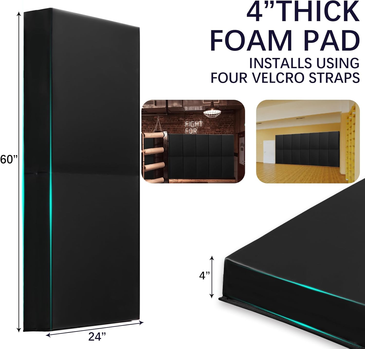 - 💯【Extensive coverage and value】 : Each package includes one smooth black sports protective wall pads, providing a total coverage area of 10 square feet. With pad sizes of 60"x24"x4" they can accommodate various wall sizes, ensuring comprehensive protection.