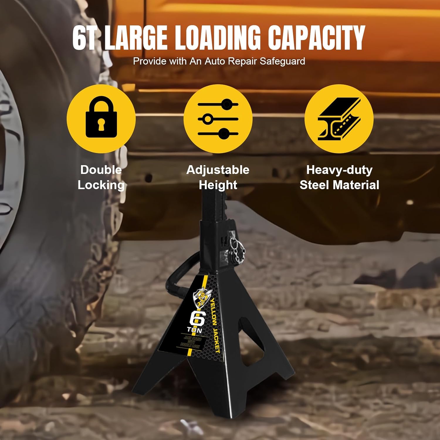 YELLOW JACKET Jack Stands 6 Ton with Double Locking for Lifting Car SUVS, Heavy Duty Steel, 13000 lb Capacity, 1 Pair, Black