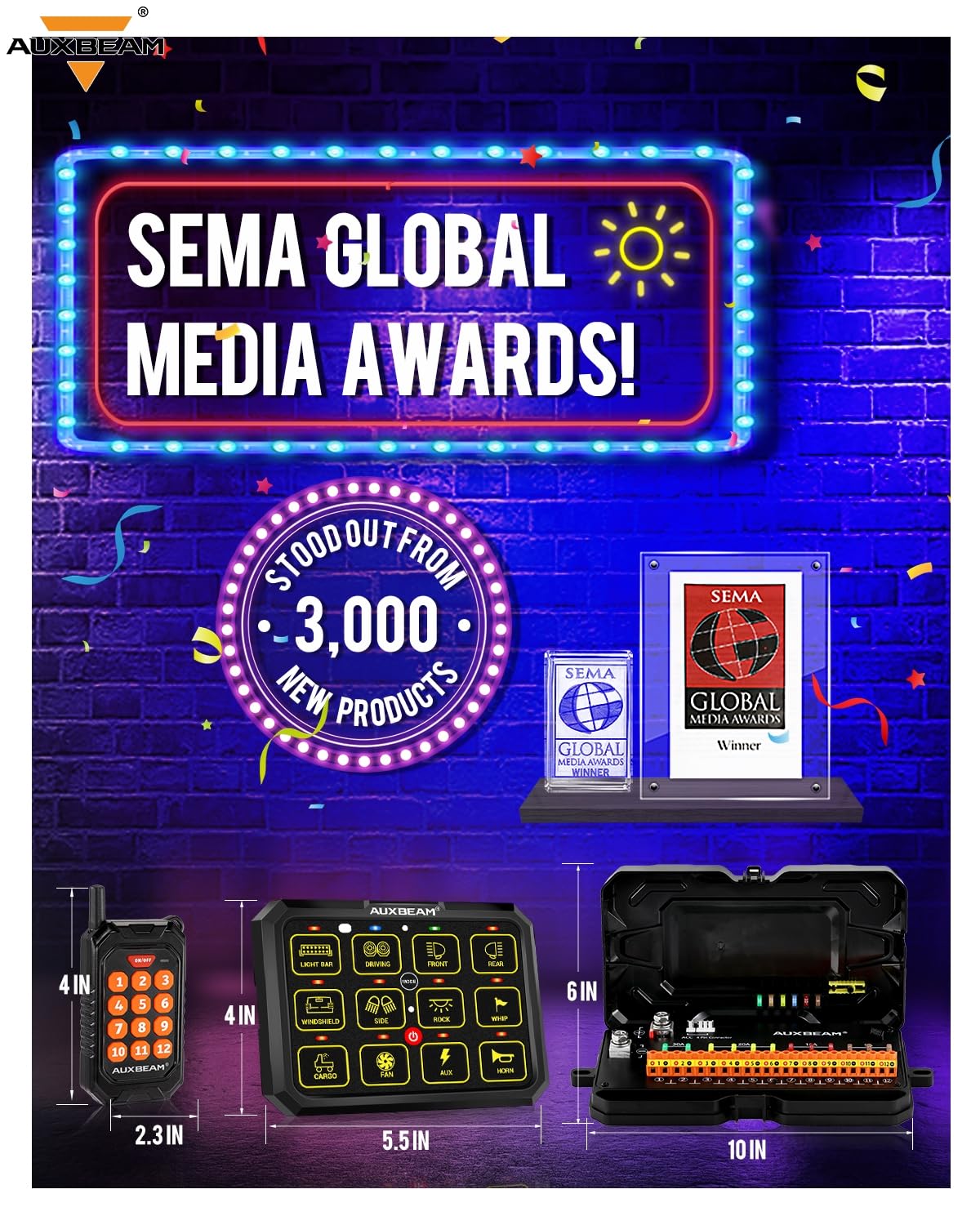 - 🏆 Elevate your driving experience with the AC-1200 12 gang switch panel – 2023 SEMA Show Global Media Award Winner!