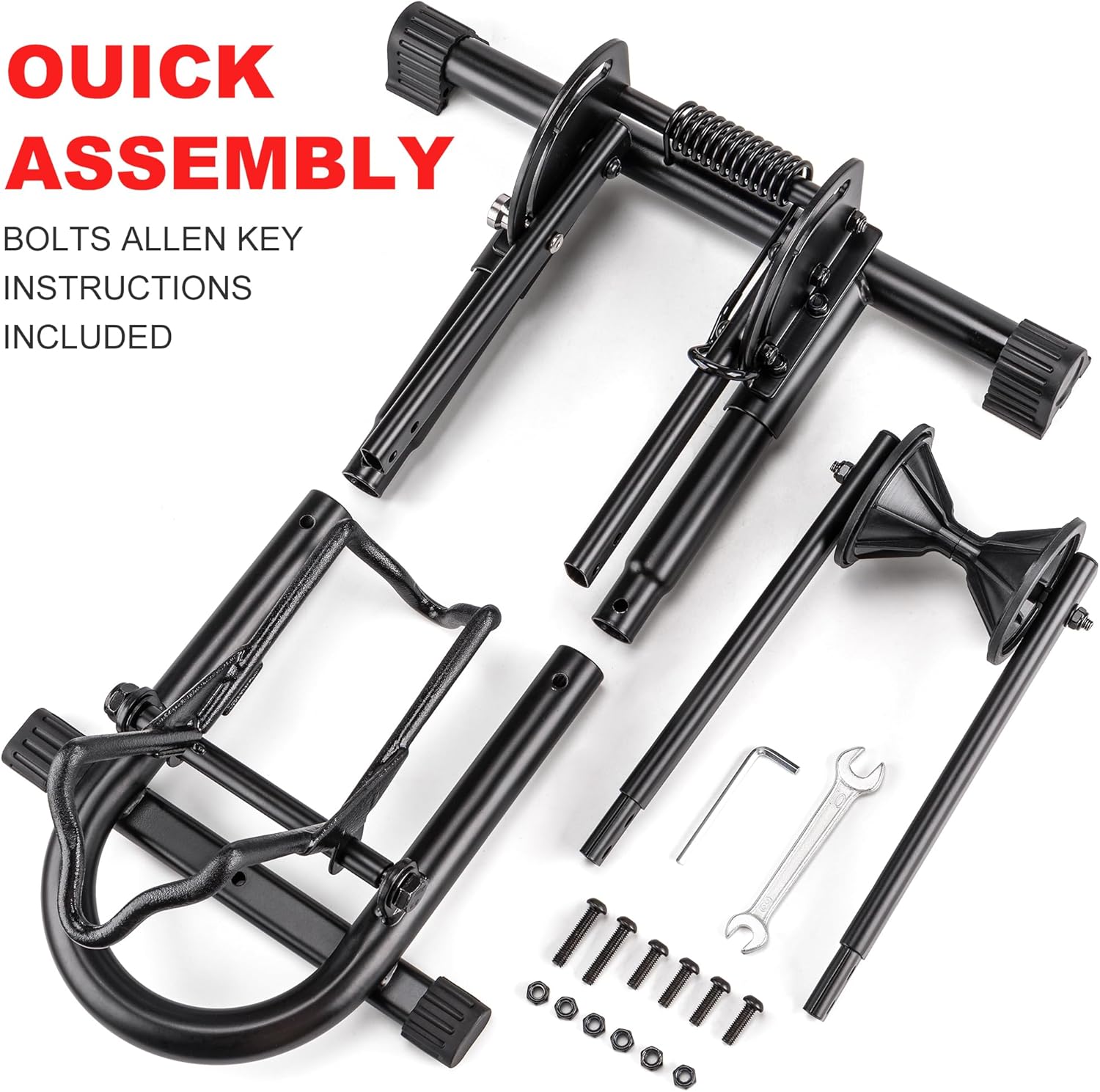 - 【EASY TO USE】: The bike floor stand is an impressively user-friendly freestanding floor rack that is also incredibly lightweight and portable to boot. It comes NEED assembled and weighs just 6.17 lbs. There is no lifting required to load and unload the bike–simply roll it onto the wheel tray and against the spring-loaded support arm. The bike storage only makes contact with the front or rear tire, so there is no rim or frame contact.